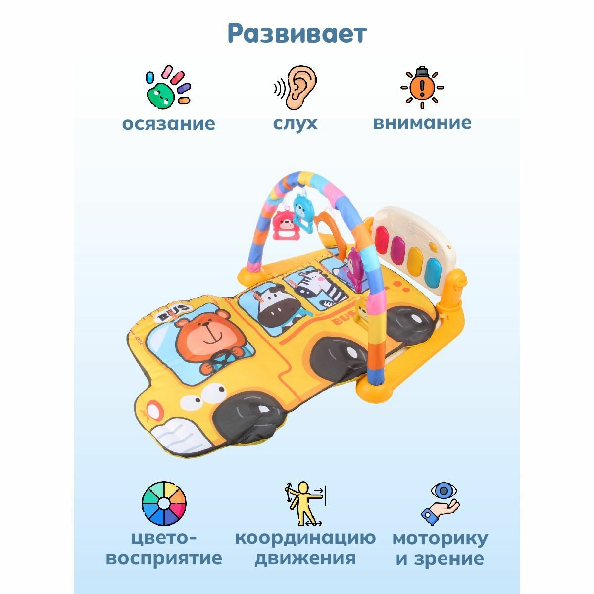 Купить Развивающий коврик для новорожденных с пианино свет звук, Veld Co
