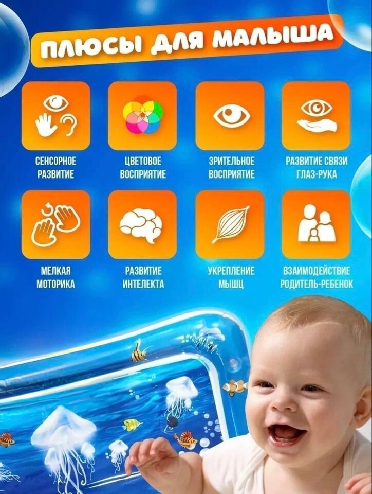 Коврик водный для детей развивающий 50*65 см/развивающие игрушки для малышей от 3 месяцев интересное: