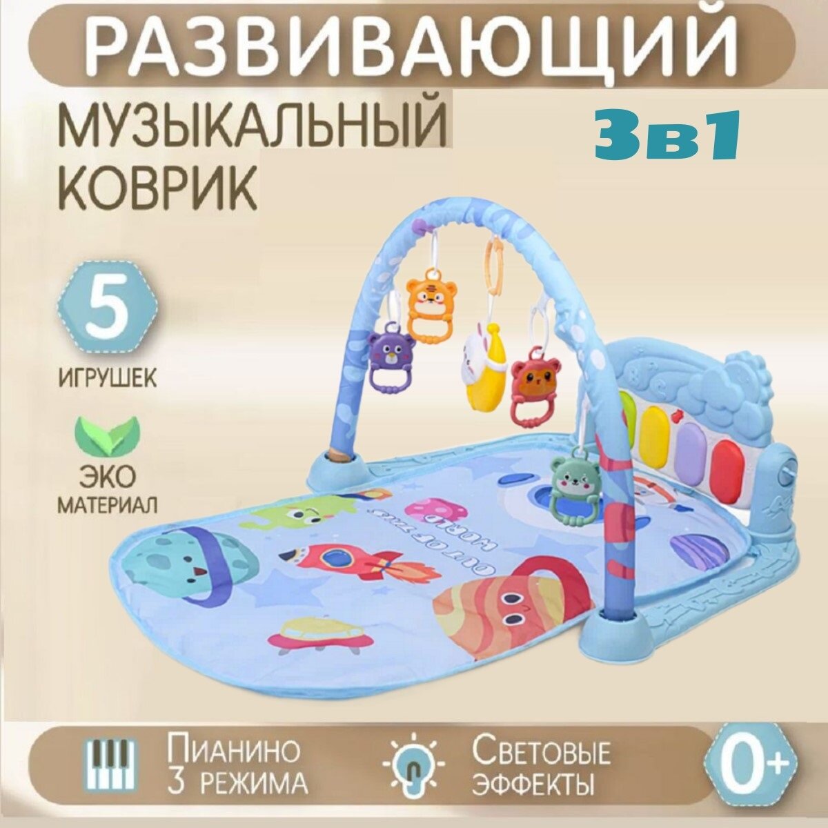 Купить Игровой развивающий коврик с пианино тотоша музыкальный со съемной дугой и игрушками для новорожденных 0+