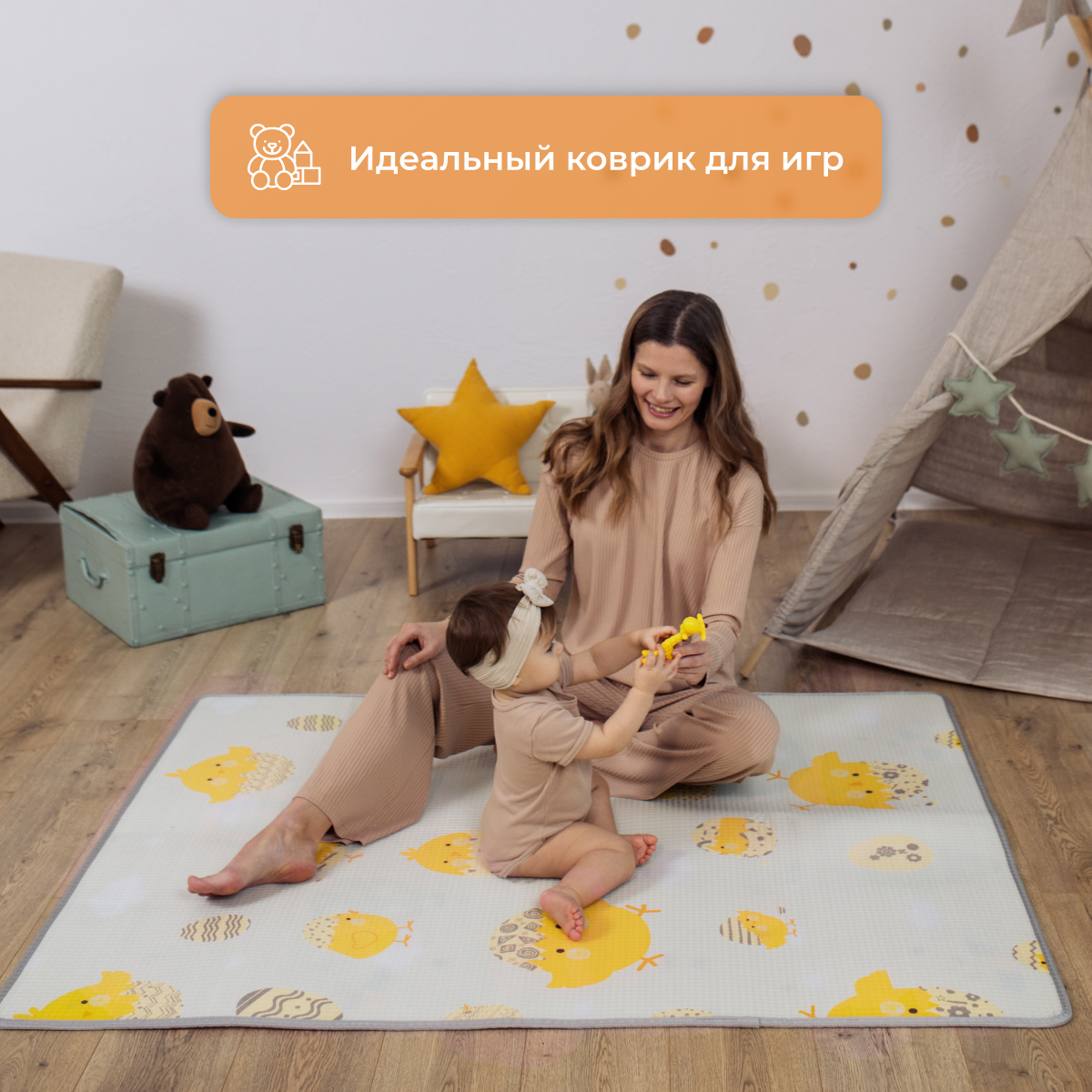 Развивающий коврик детский для ползания Mamagoods 120x150 см Цыплята и Воздушные шары интересное: