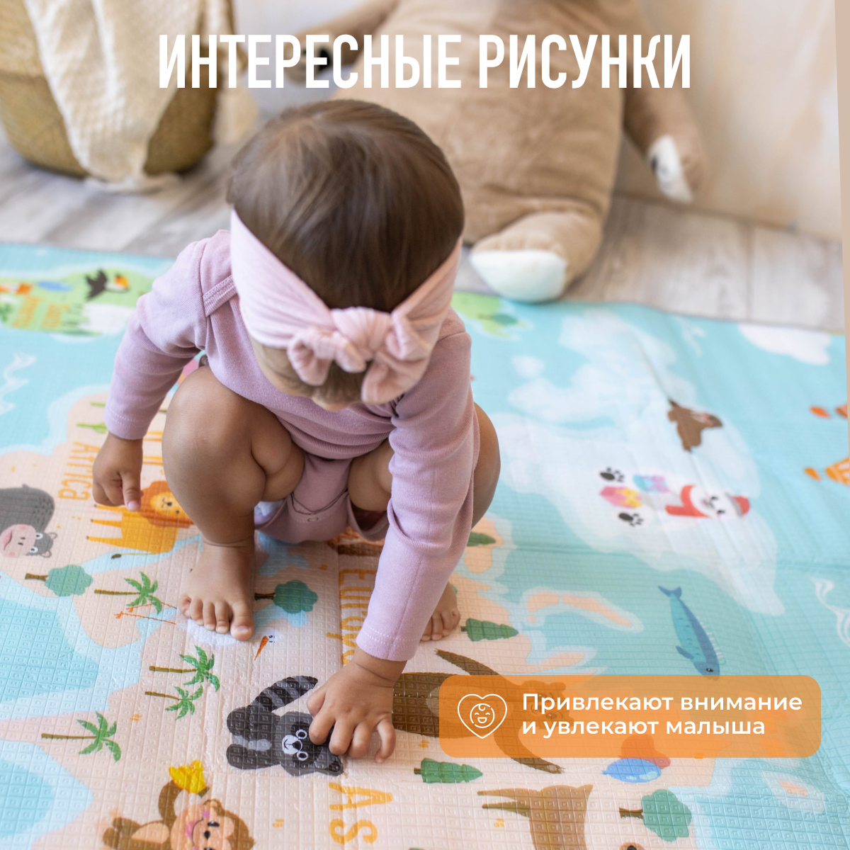 СохранитьРазвивающий коврик детский Mamagoods для ползания складной игровой 120x150 см Карта мира интересное: