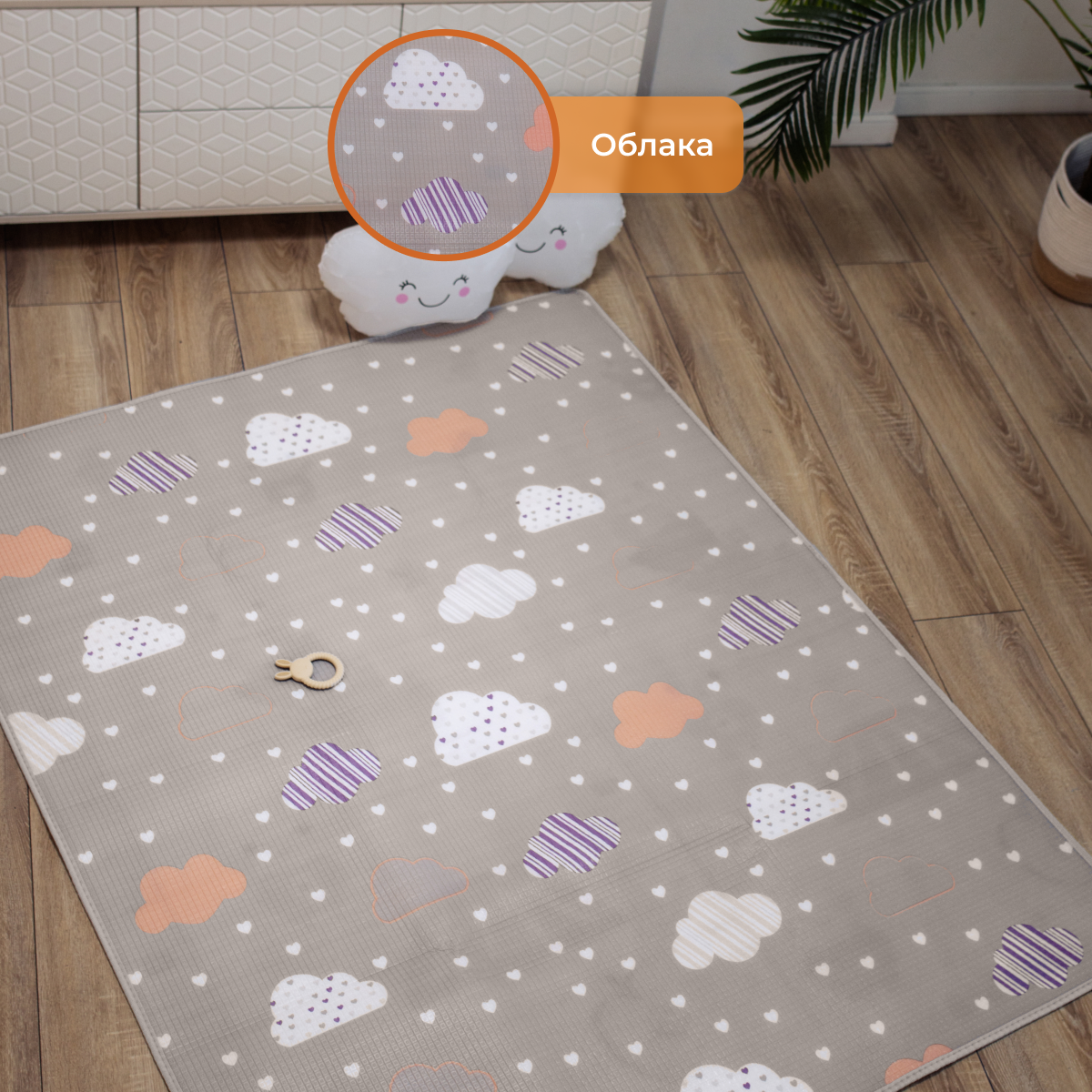 СохранитьРазвивающий коврик детский Mamagoods для ползания складной двусторонний игровой 145 x 180 см Облачка и Зайки в чашках интересное:
