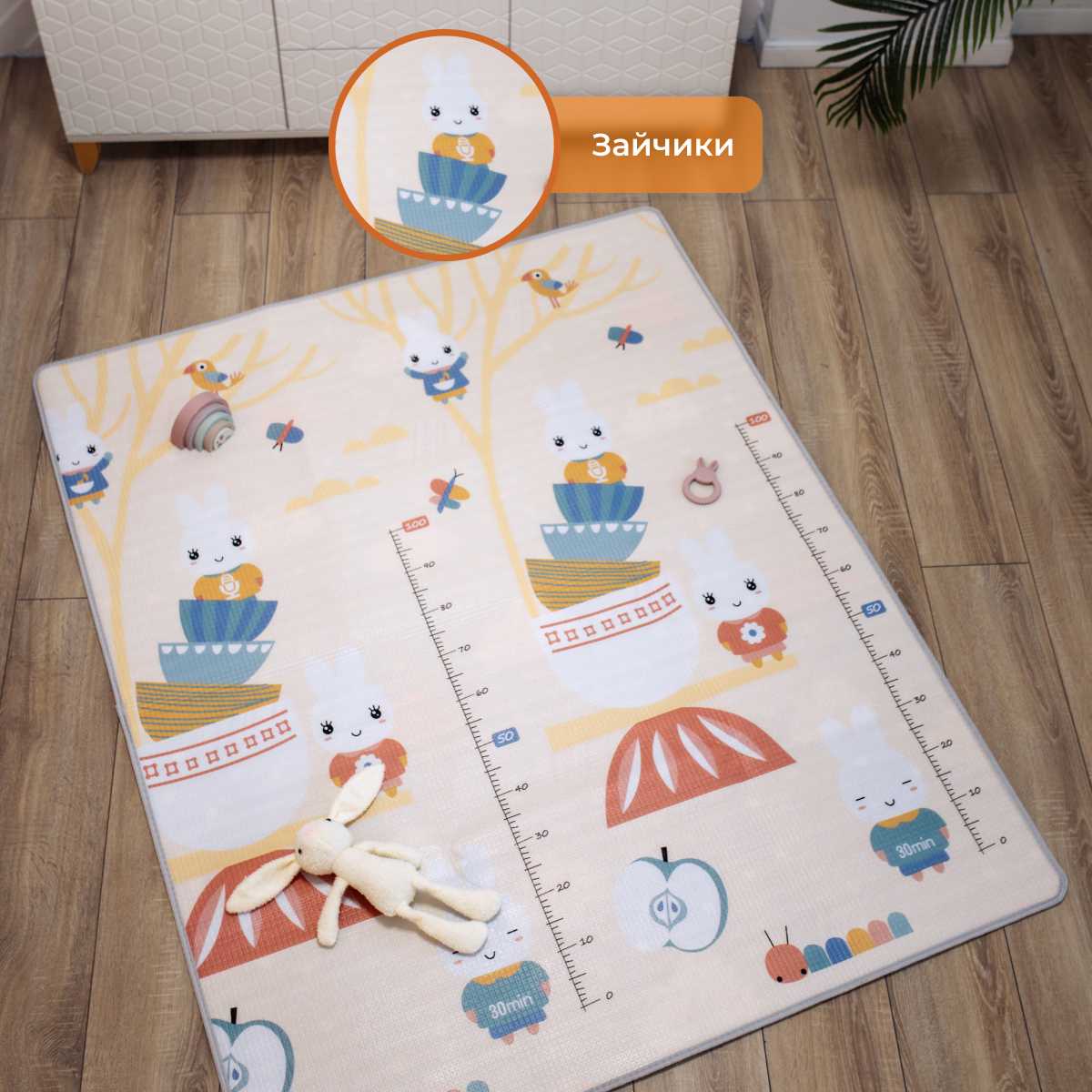 Купить Развивающий коврик детский Mamagoods для ползания складной двусторонний игровой 145 x 180 см Облачка и Зайки в чашках