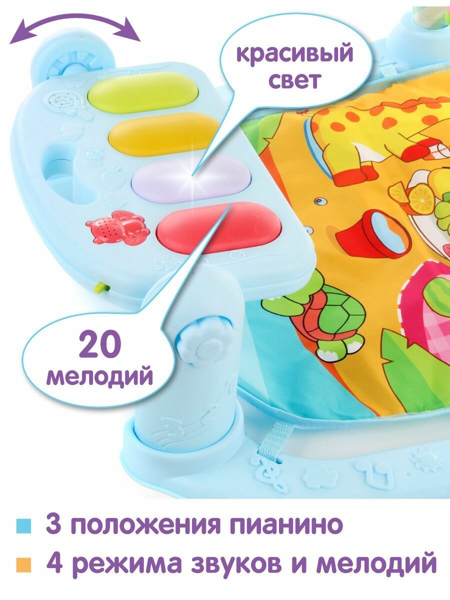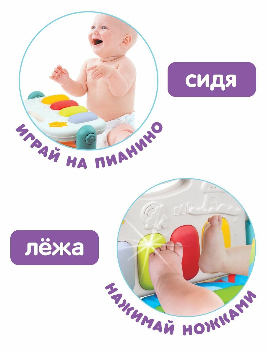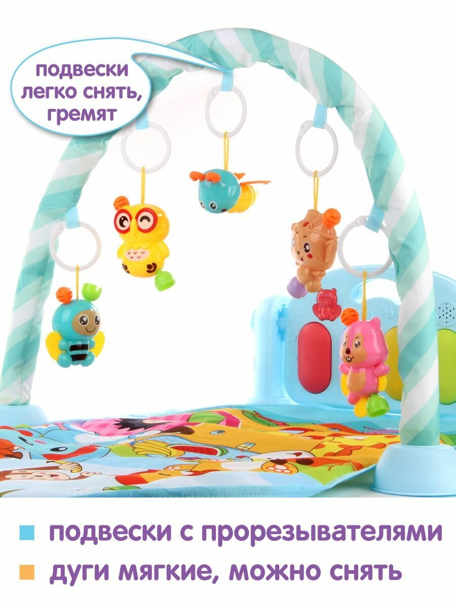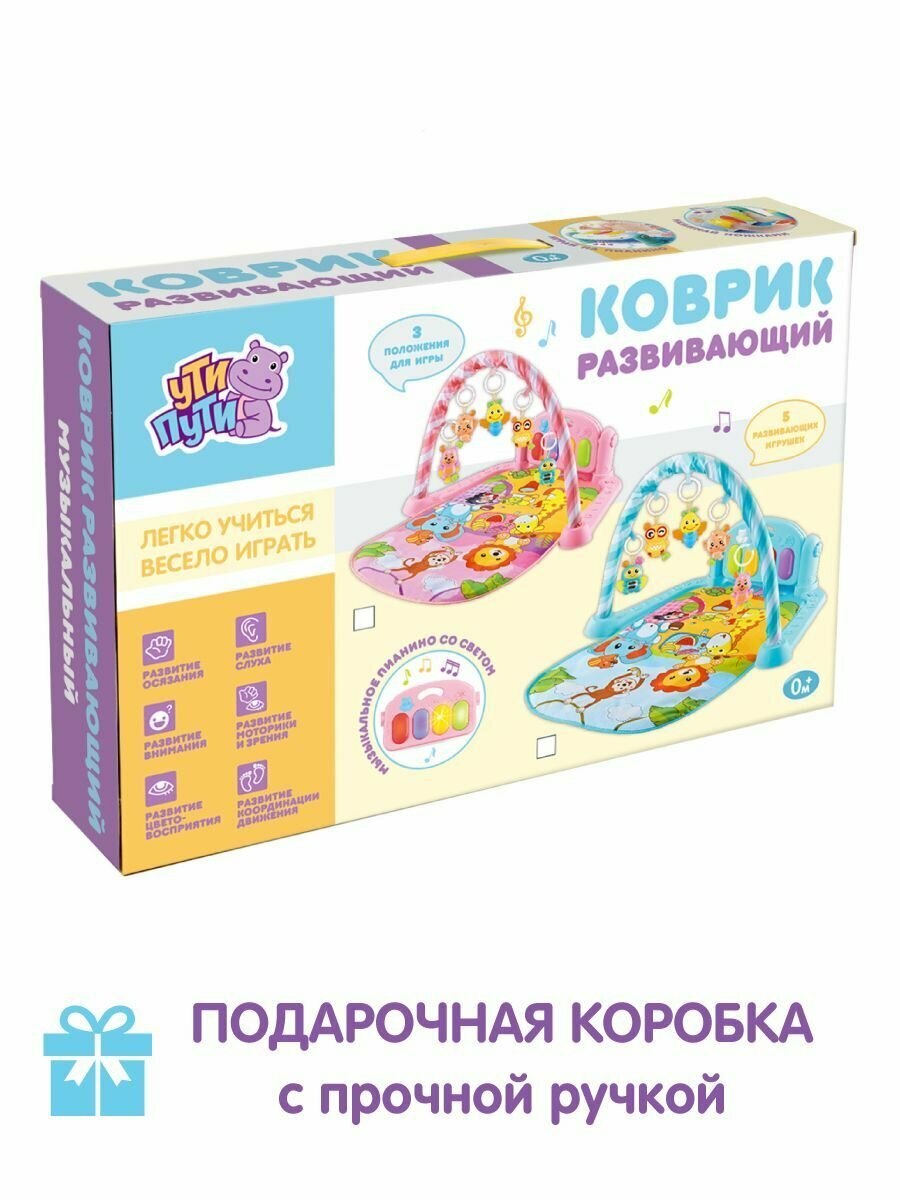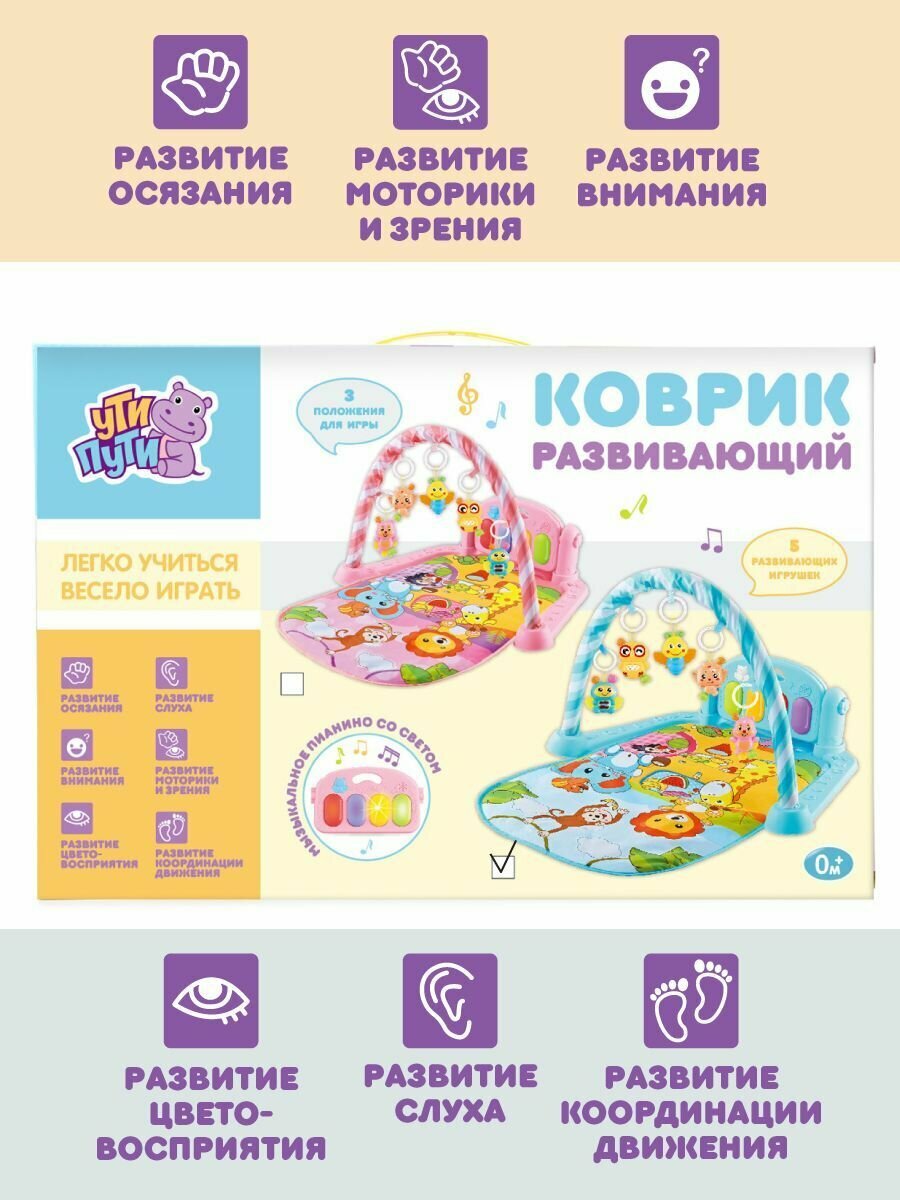 Купить Развивающий коврик для новорожденных с пианино, Ути Пути / Музыкальный игровой коврик, дуга с игрушками для малышей / Подвесные игрушки-погремушки для детей, 106193