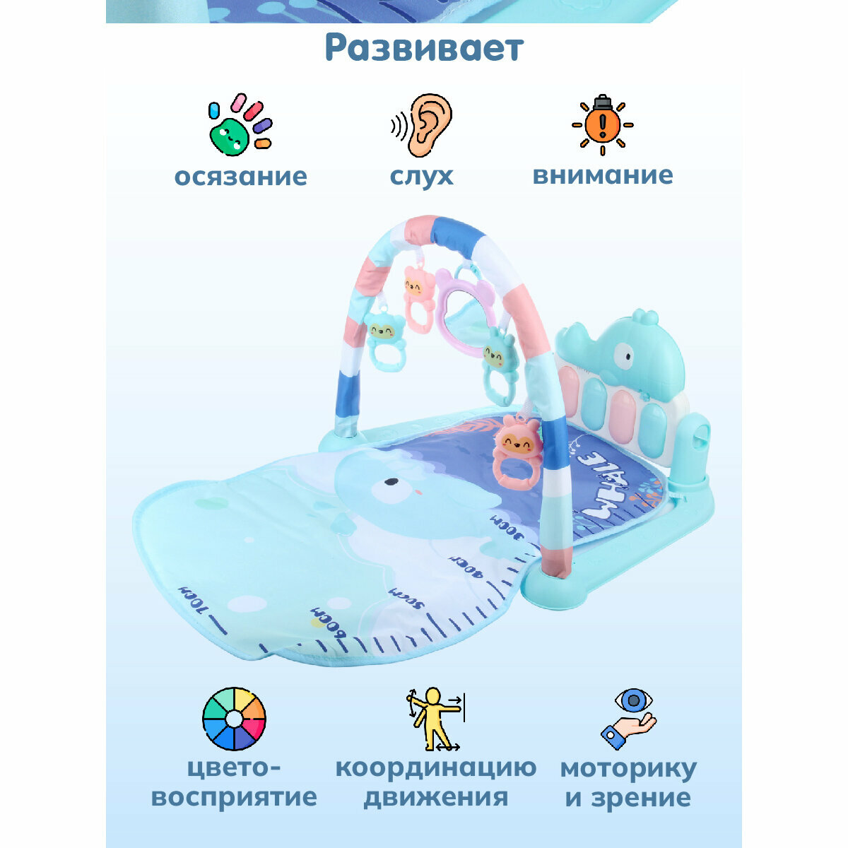 Купить Развивающий коврик Veld Co 2 в 1 Пианино свет звук 5 игрушек Кит