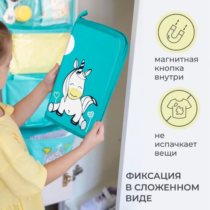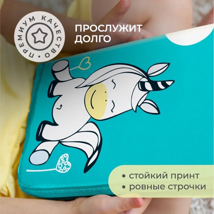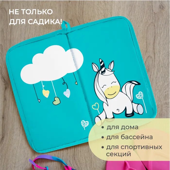 Купить Коврик для переобувания Всё на местах складной антискользящий с принтом Единорог бирюзовый 30х36 см