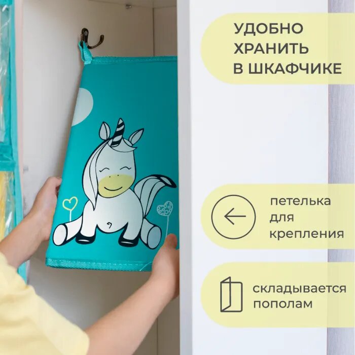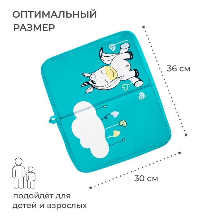 Коврик для переобувания Всё на местах складной антискользящий с принтом Единорог бирюзовый 30х36 см интересное: