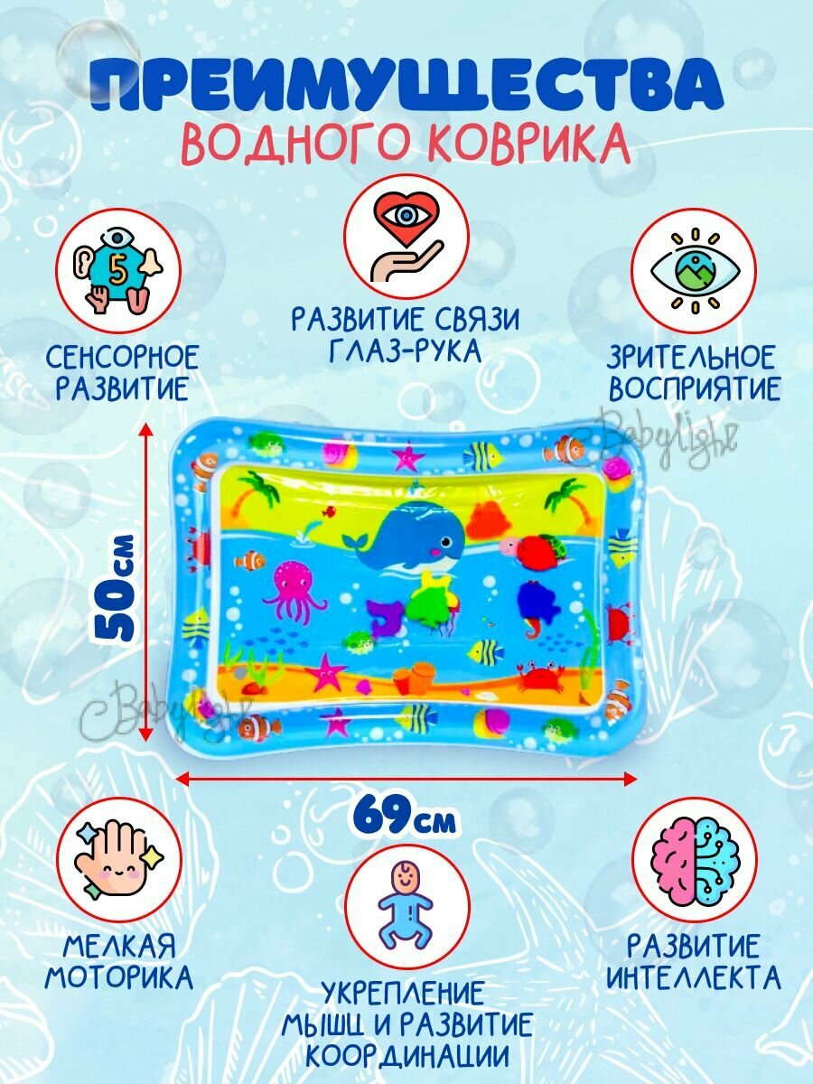 Акваковрик, детский развивающий водный коврик Осьминожка, игровой надувной, Морские чудеса