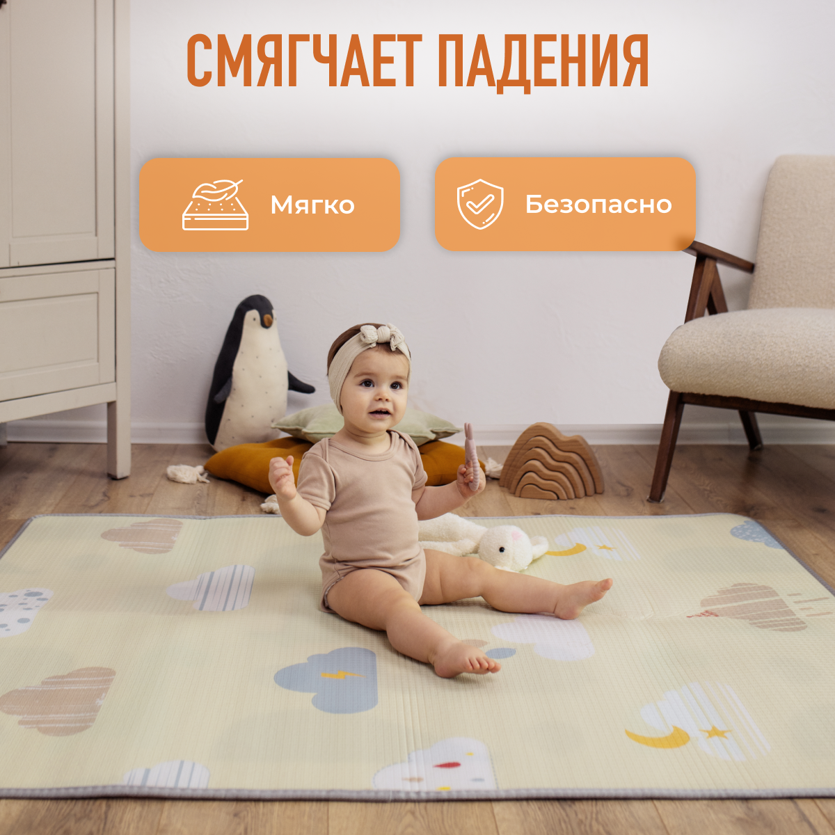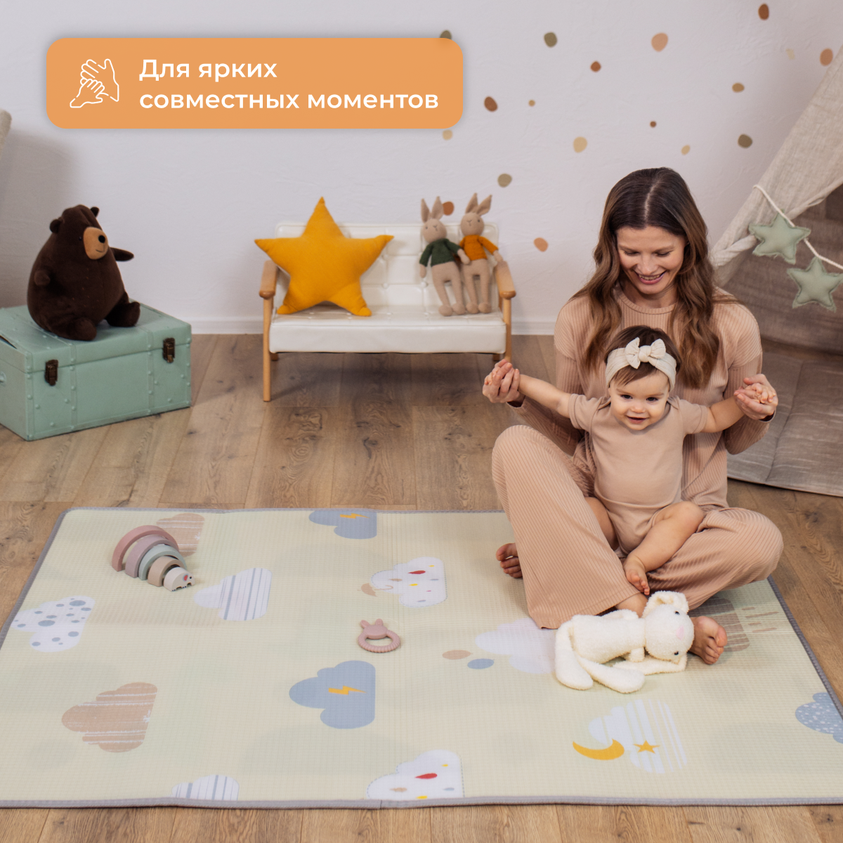Развивающий коврик детский для ползания Mamagoods 120x150 см Нежные облачка интересное: