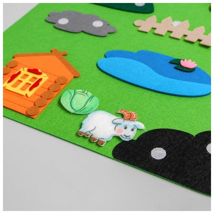 Развивающая игра с липучками Smile Decor "Деревенский дворик", коврик-игралка в дорогу из фетра интересное:
