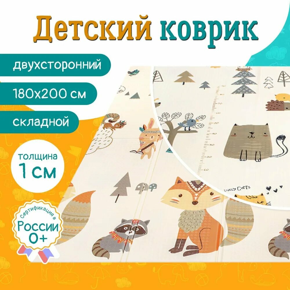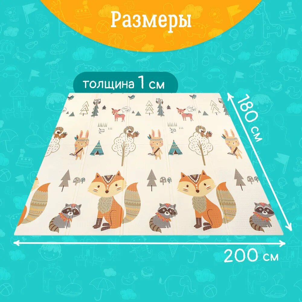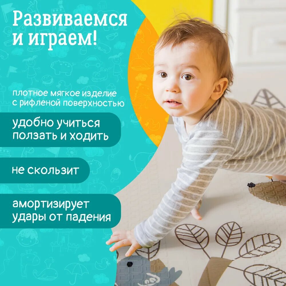 Коврик детский двухсторонний для ползания 180x200x1 см WellMat (Meitoku) "№7" развивающий моющийся для ползания игровой непромокаемый интересное: