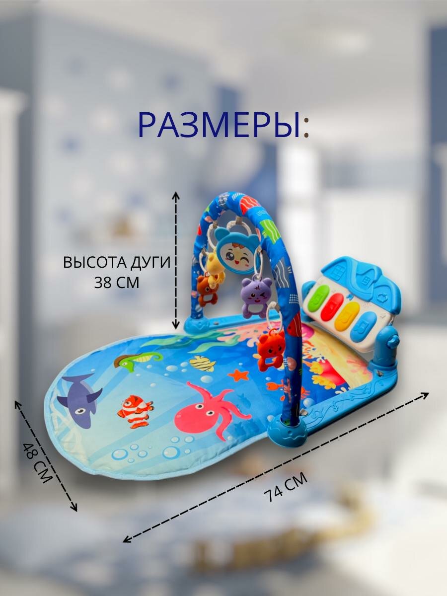 Коврик развивающий для детей, с пианино и погремушками, со звуком и светом, игровой центр, игрушки для новорожденных до трех лет. Цвет синий. интересное: