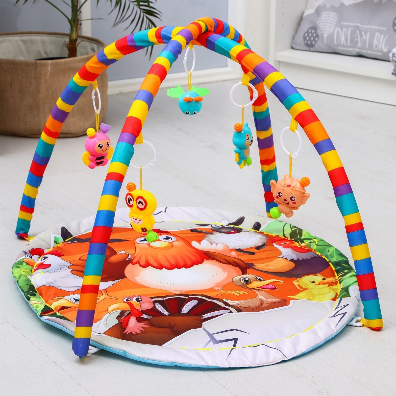 Развивающий коврик с дугами и игрушками «Домашние животные», круглый интересное: