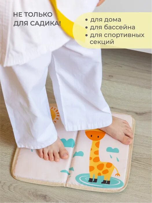 Коврик для переобувания Всё на местах складной антискользящий с принтом Жираф бежевый 30х36 см интересное: