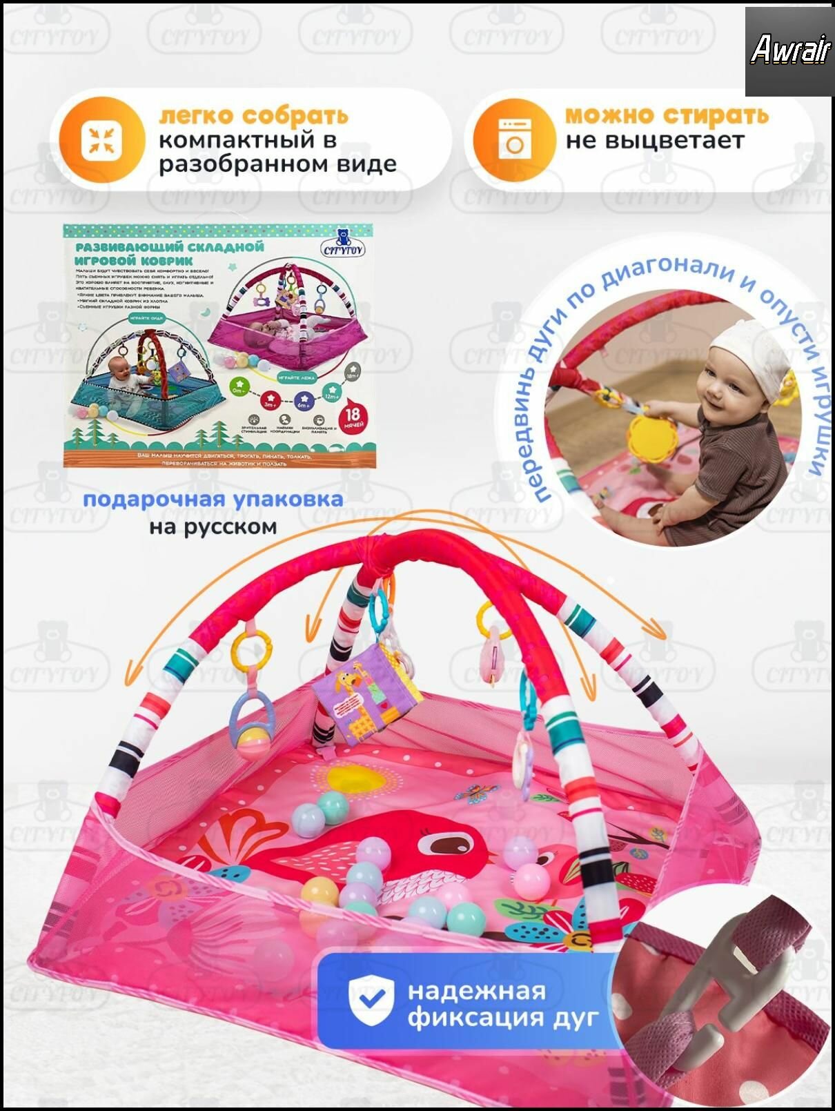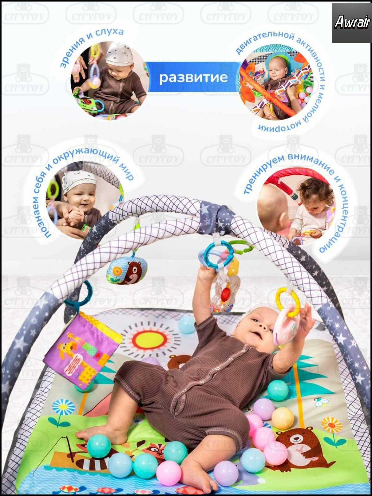 Купить Коврик игровой развивающий для новорожденных и малышей CITYTOY-3