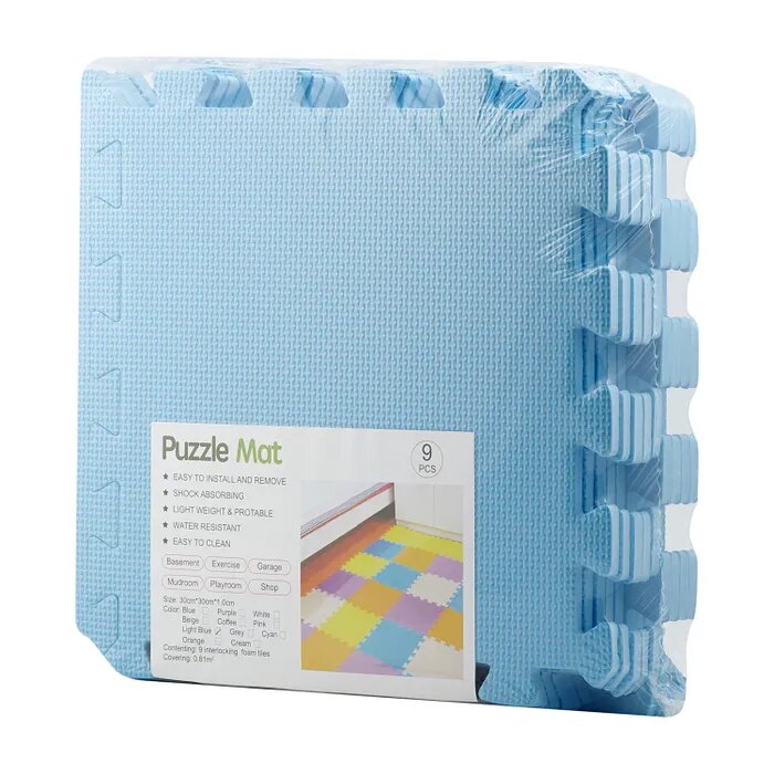Купить Коврик пазл детский WellMat Голубой 30x30x1 см 9 шт. с окантовкой игровой развивающий для ползания