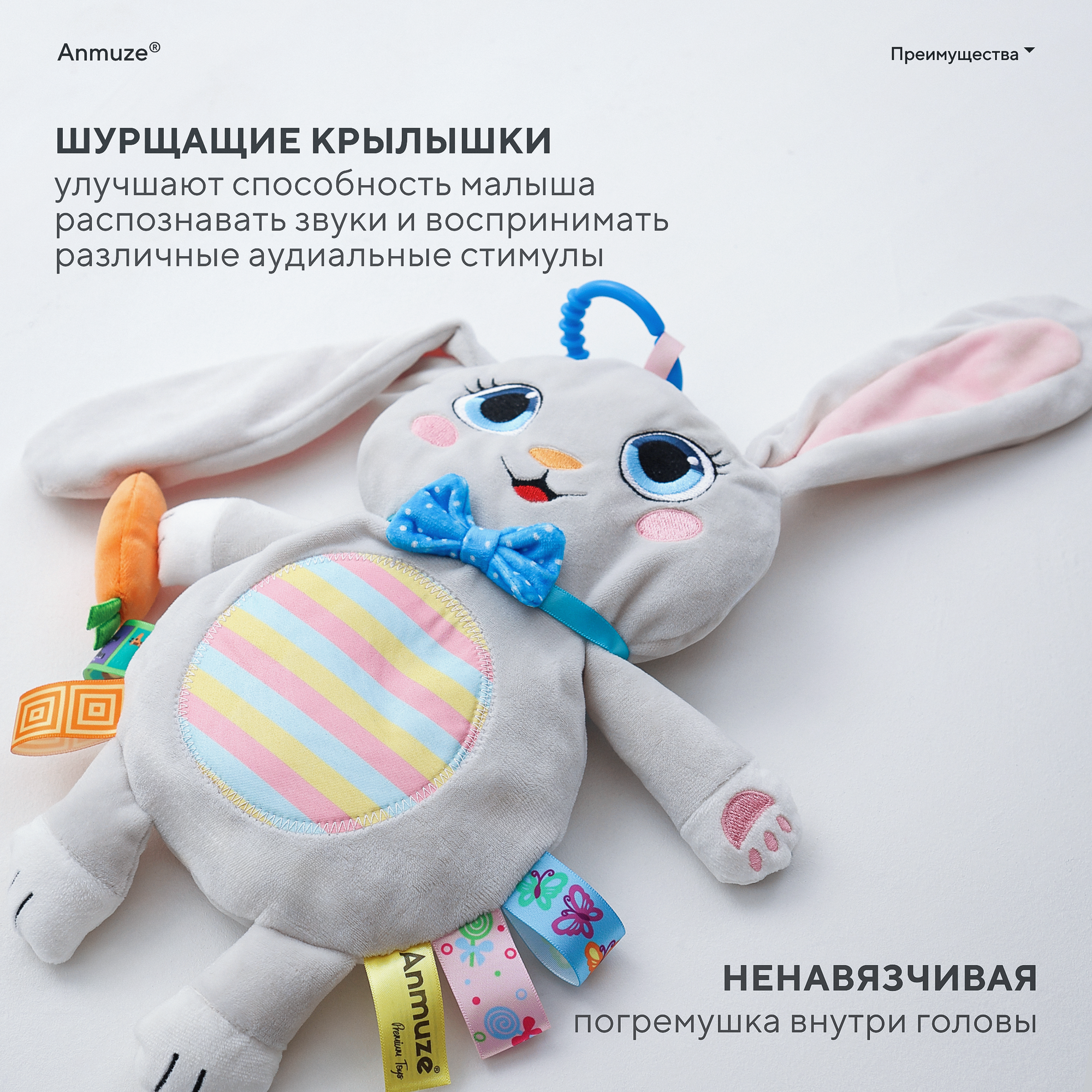 Большая погремушка-шуршалка "Зайка" интересное: