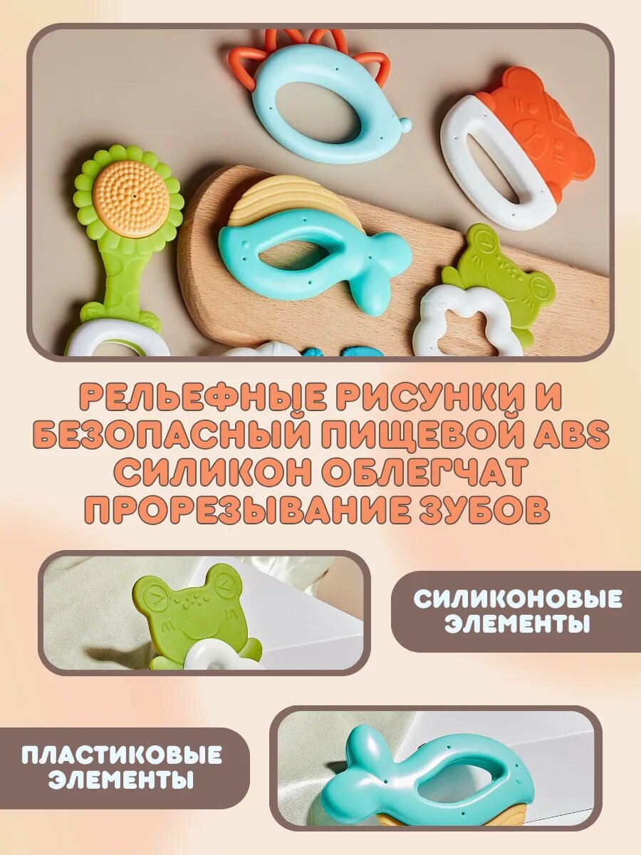 Набор погремушек и прорезывателей для новорожденных в кейсе 10 штук развивающий, пластик/силикон