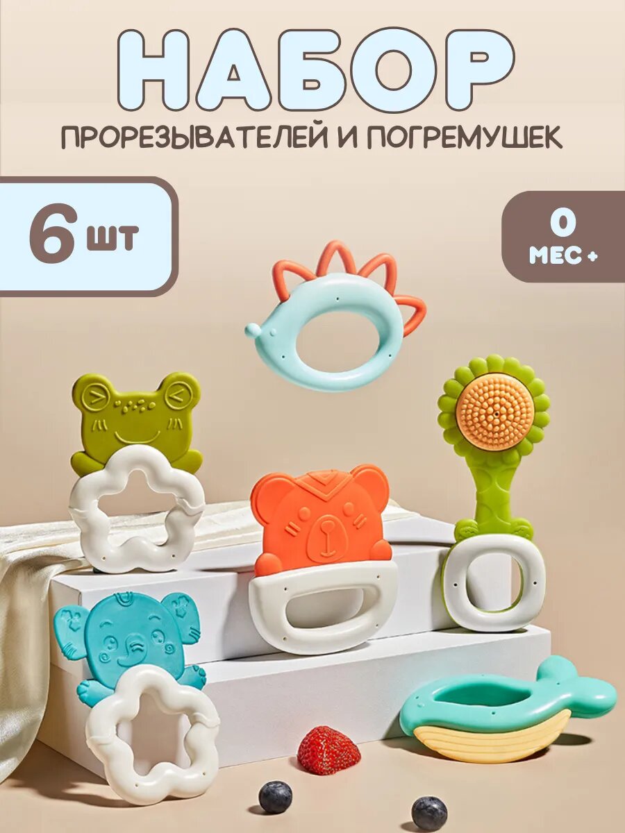 Погремушки для новорожденных прорезыватель для зубов 0+ набор 6шт пластик/силикон интересное: