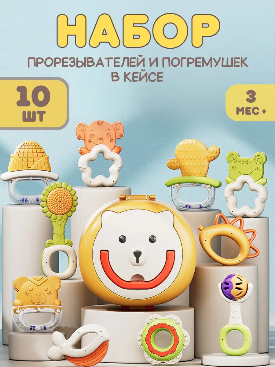 Купить Набор погремушек и прорезывателей для новорожденных в кейсе пищевой силикон 10 шт