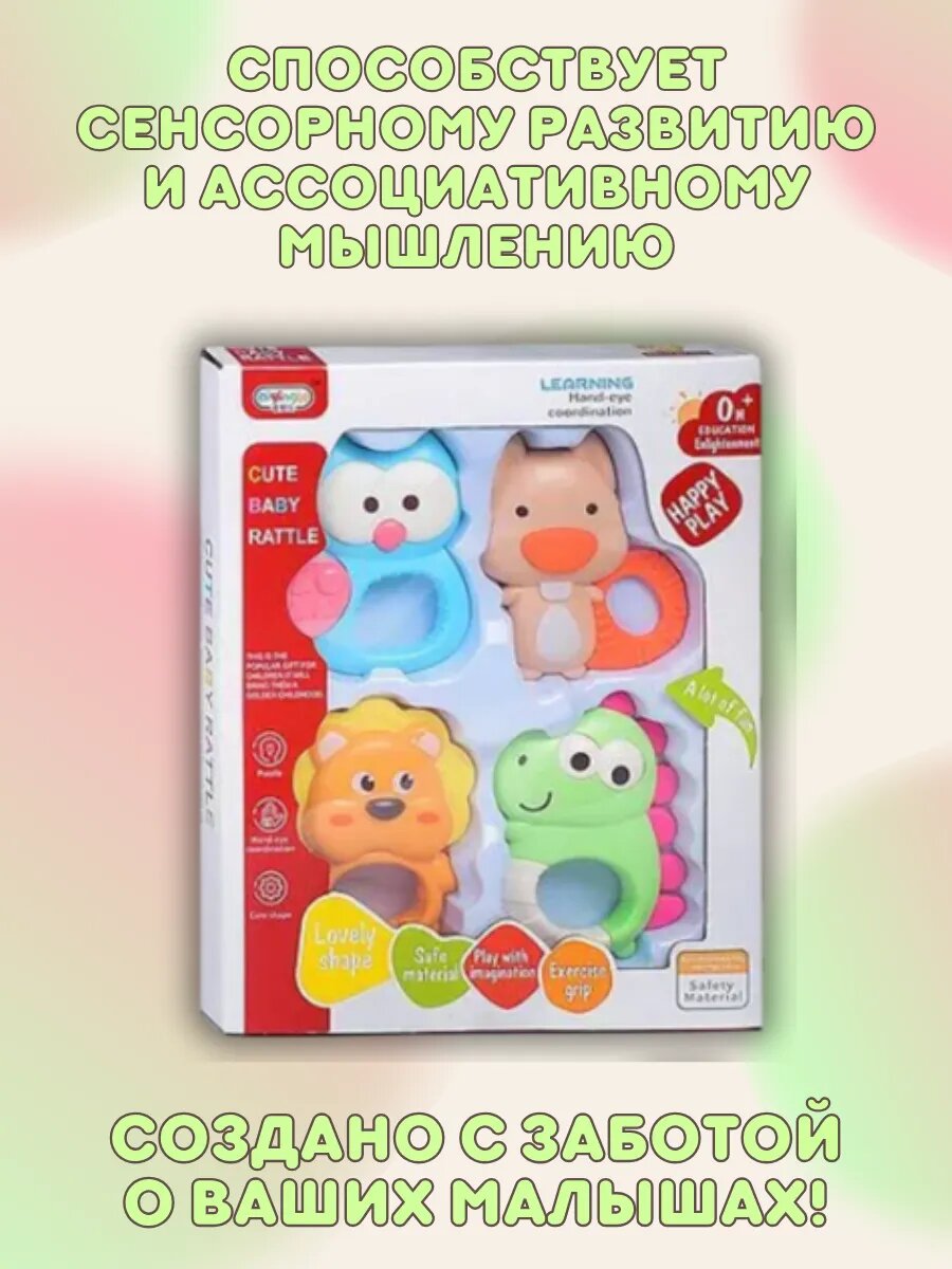 Купить Погремушки для новорожденных прорезыватель для зубов 0+ набор 4 шт пластик/ пищевой силикон