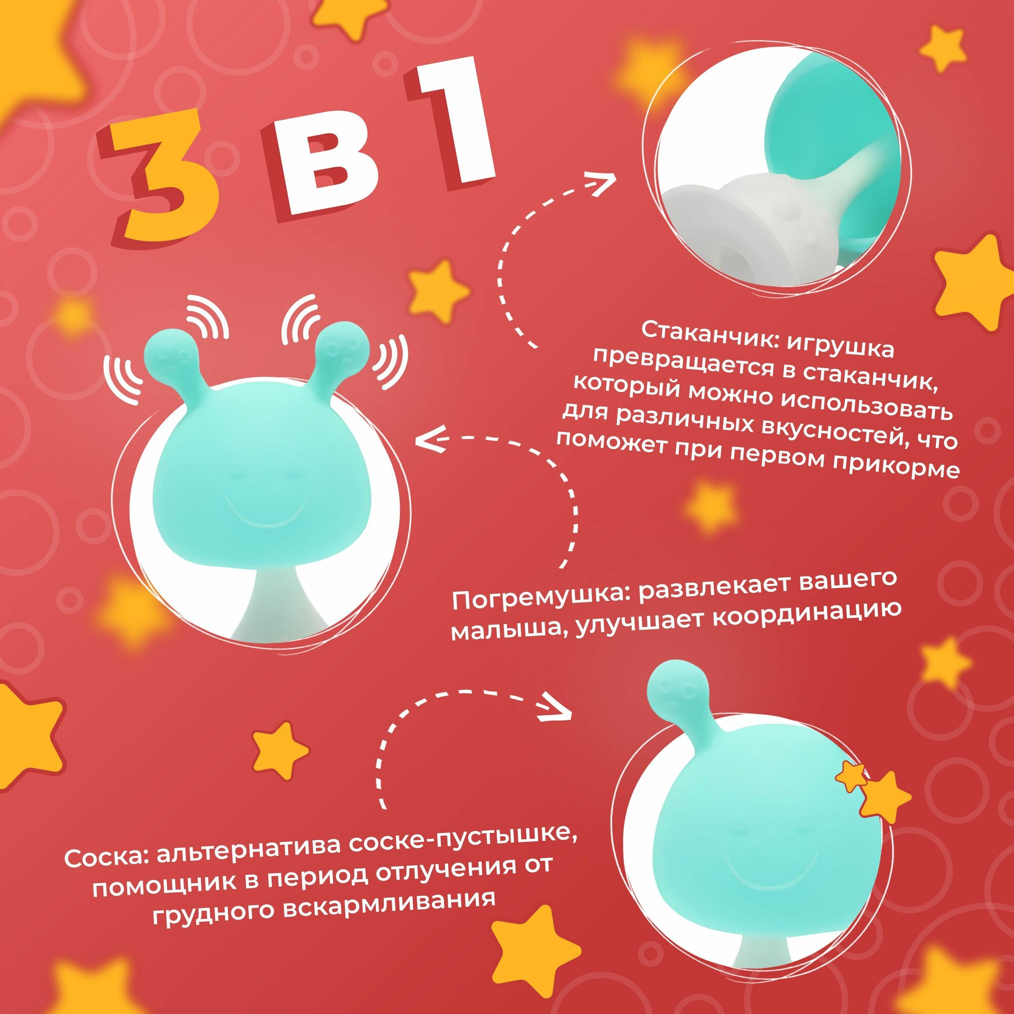 Ниже Вы можете прочитать отзывы на Прорезыватель для зубов с погремушкой 4 в 1 : форма соска, детская игрушка на присоске, стаканчик, ознакомится с подробными характеристиками, посмотреть интересные обзоры и фотографии на Прорезыватель для зубов с погремушкой 4 в 1 : форма соска, детская игрушка на присоске, стаканчик.