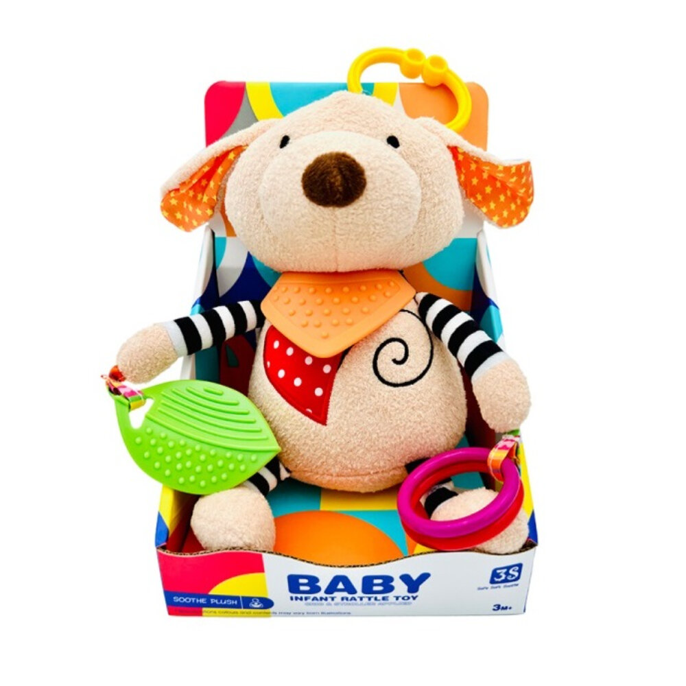Купить Игрушка для развития малыша погремушка мягкая игрушка Собачка, погремушка с прорезывателем для новорожденного, подвеска на кроватку, на коляску, 15 х 15 х 18 см, KYB22F-001