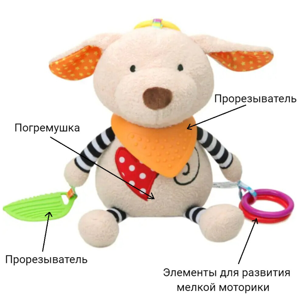 СохранитьИгрушка для развития малыша погремушка мягкая игрушка Собачка, погремушка с прорезывателем для новорожденного, подвеска на кроватку, на коляску, 15 х 15 х 18 см, KYB22F-001 интересное:
