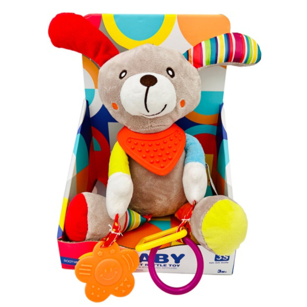 Купить Игрушка для развития малыша погремушка мягкая Собачка для новорожденного с прорезывателем, подвеска на кроватку, на коляску, 23 х 9 х 33 см, KYB22E-004