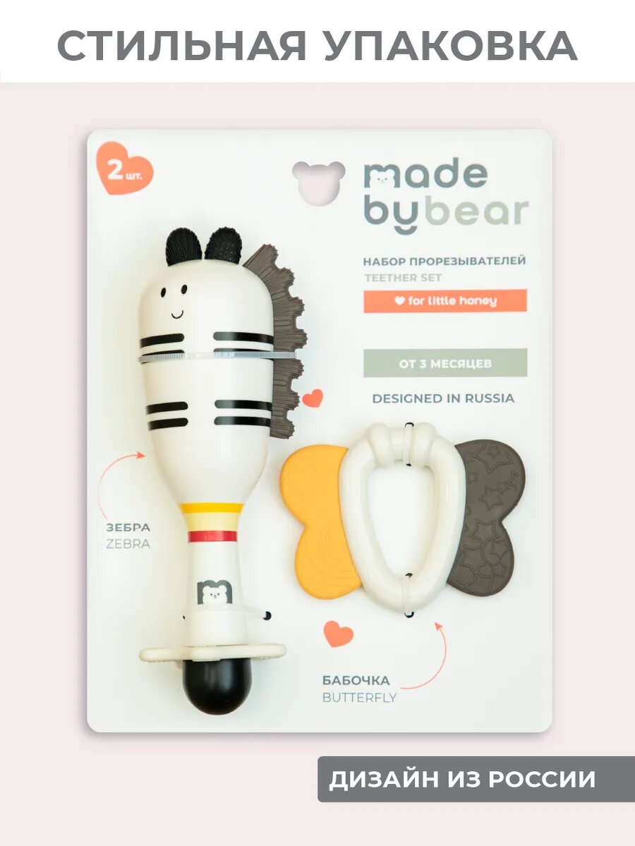 Набор игрушек MADEBYBEAR Honey Story, погремушка + прорезыватель, 0+, 2 шт.