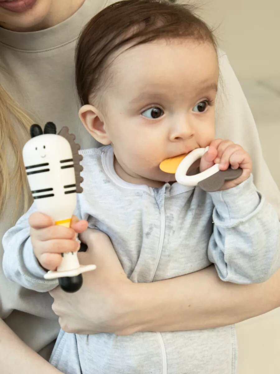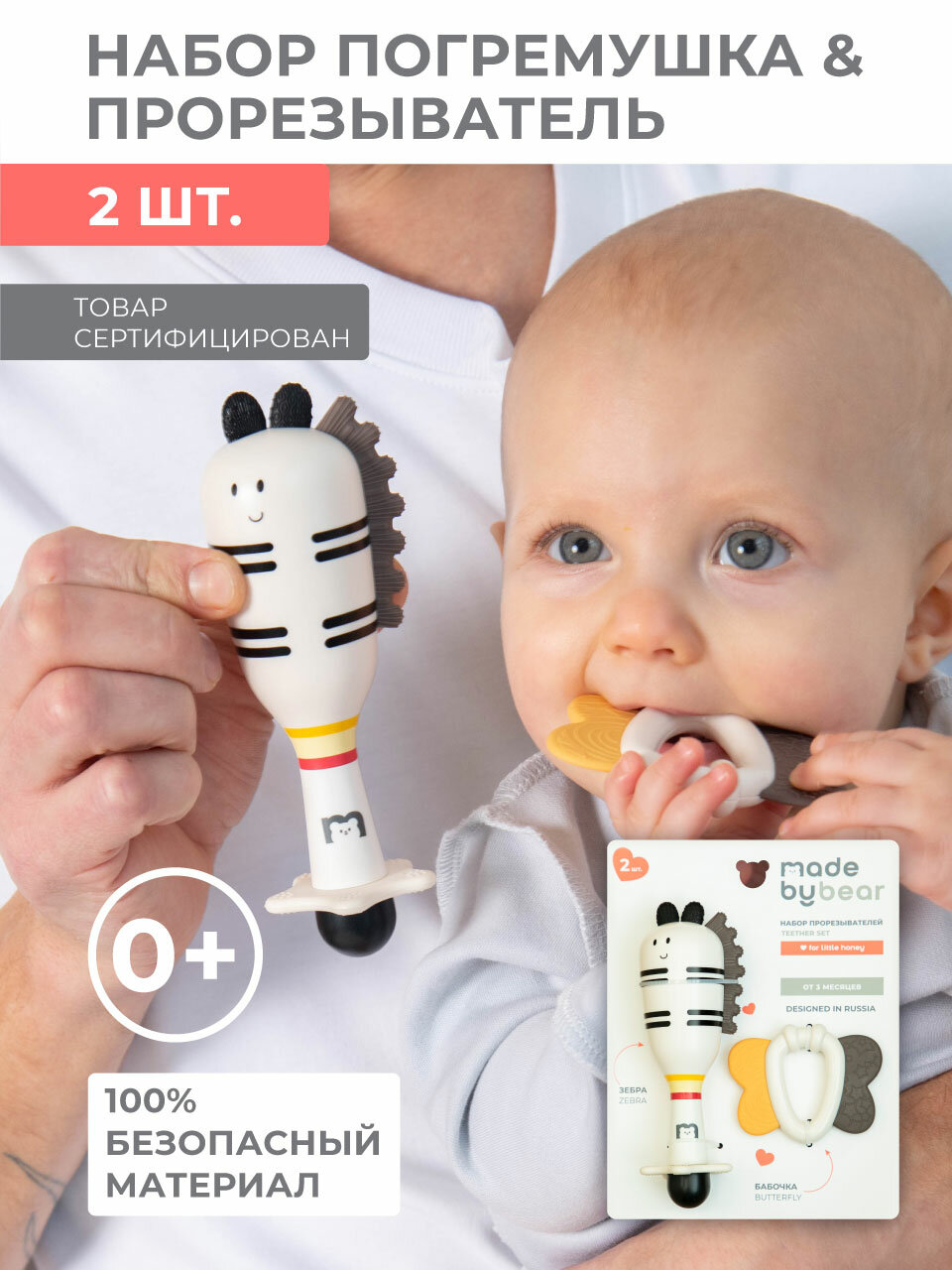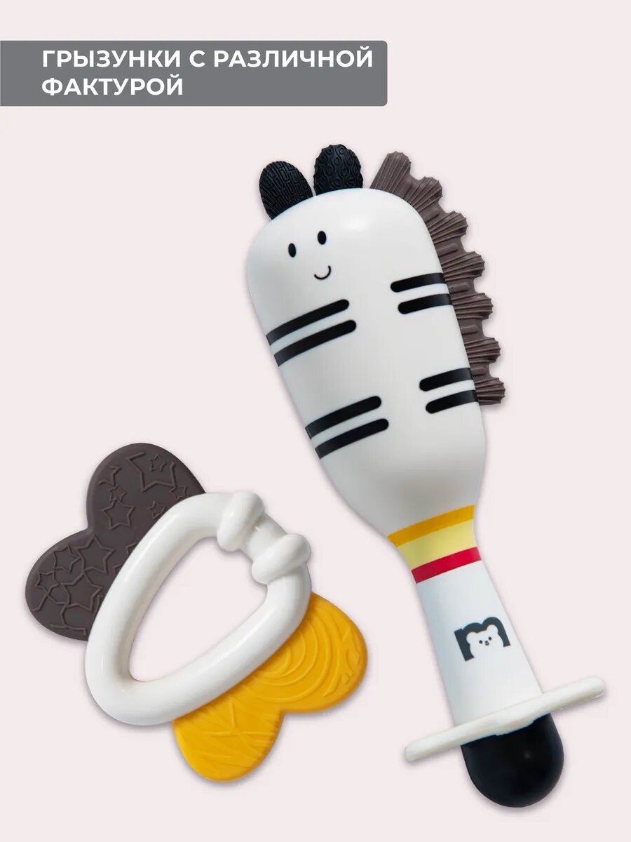 Набор игрушек MADEBYBEAR Savannah, погремушка + прорезыватель, 0+, 2 шт. интересное: