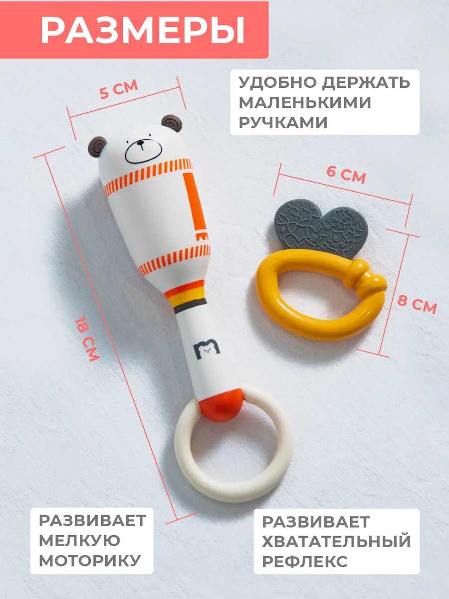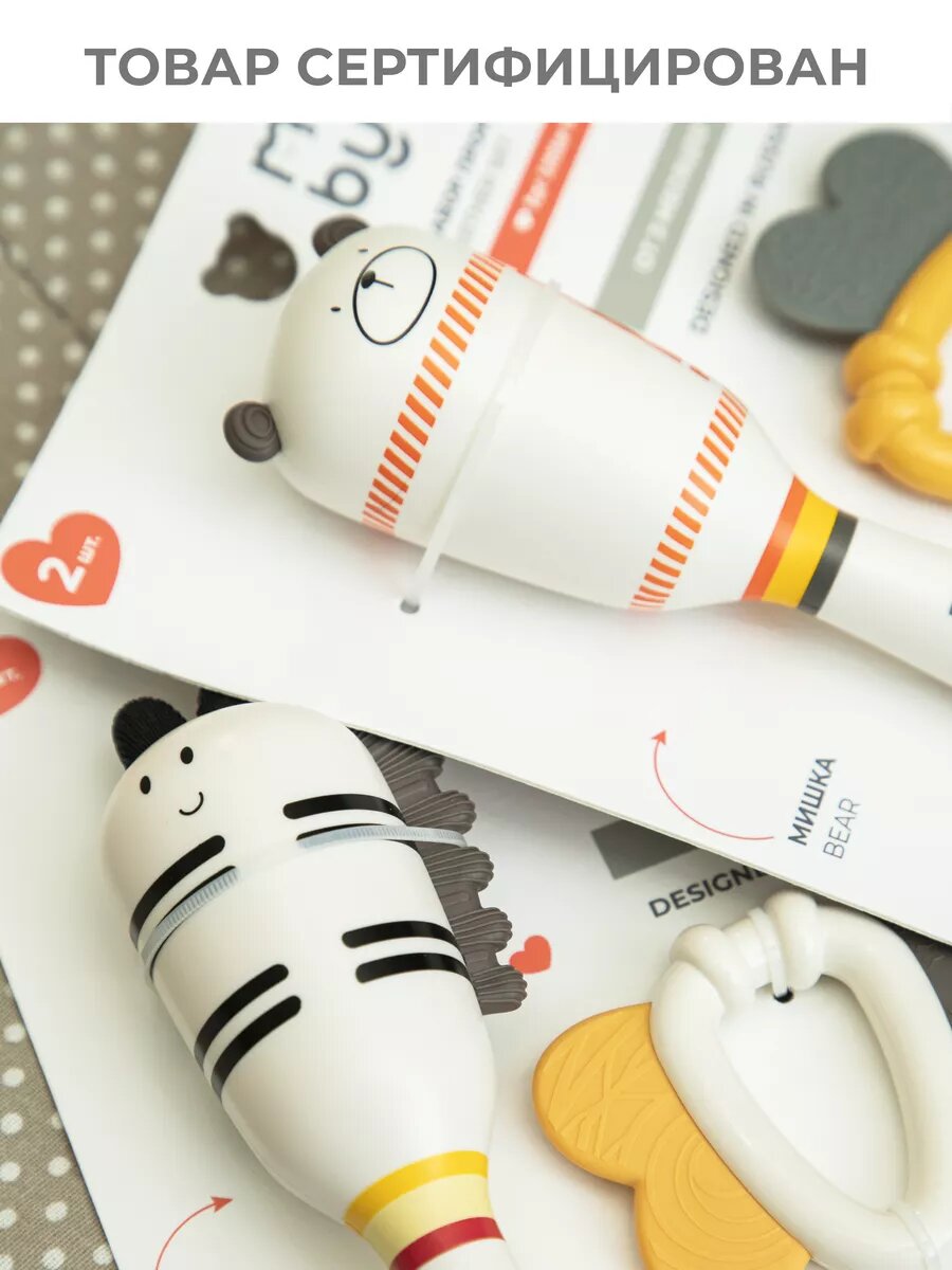Набор игрушек MADEBYBEAR Honey Story, погремушка + прорезыватель, 0+, 2 шт. интересное: