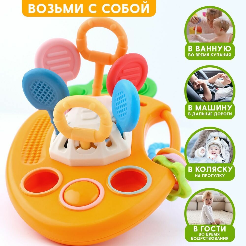 Погремушка "Кролик", 5 в 1, для раннего развития, от 6 до 12 мес, пластик, силикон, бежевая