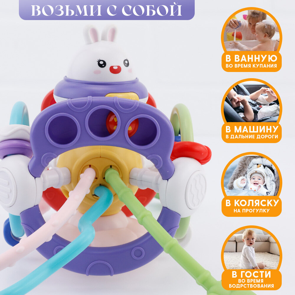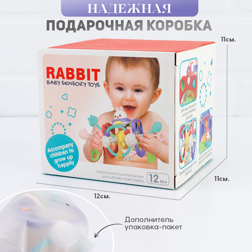 Купить Погремушка "Кролик", 5 в 1, для раннего развития, от 6 до 12 мес, пластик, силикон, бежевая