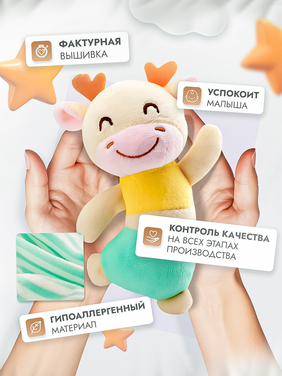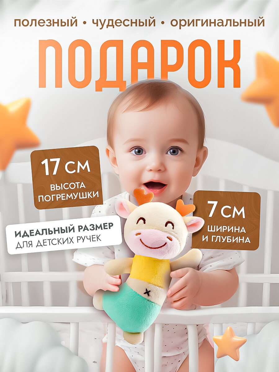 Погремушка "Танцующий Жирафик" SHARKTOYS, с пищалкой, шуршалка, развивающая, гипоаллергенная интересное: