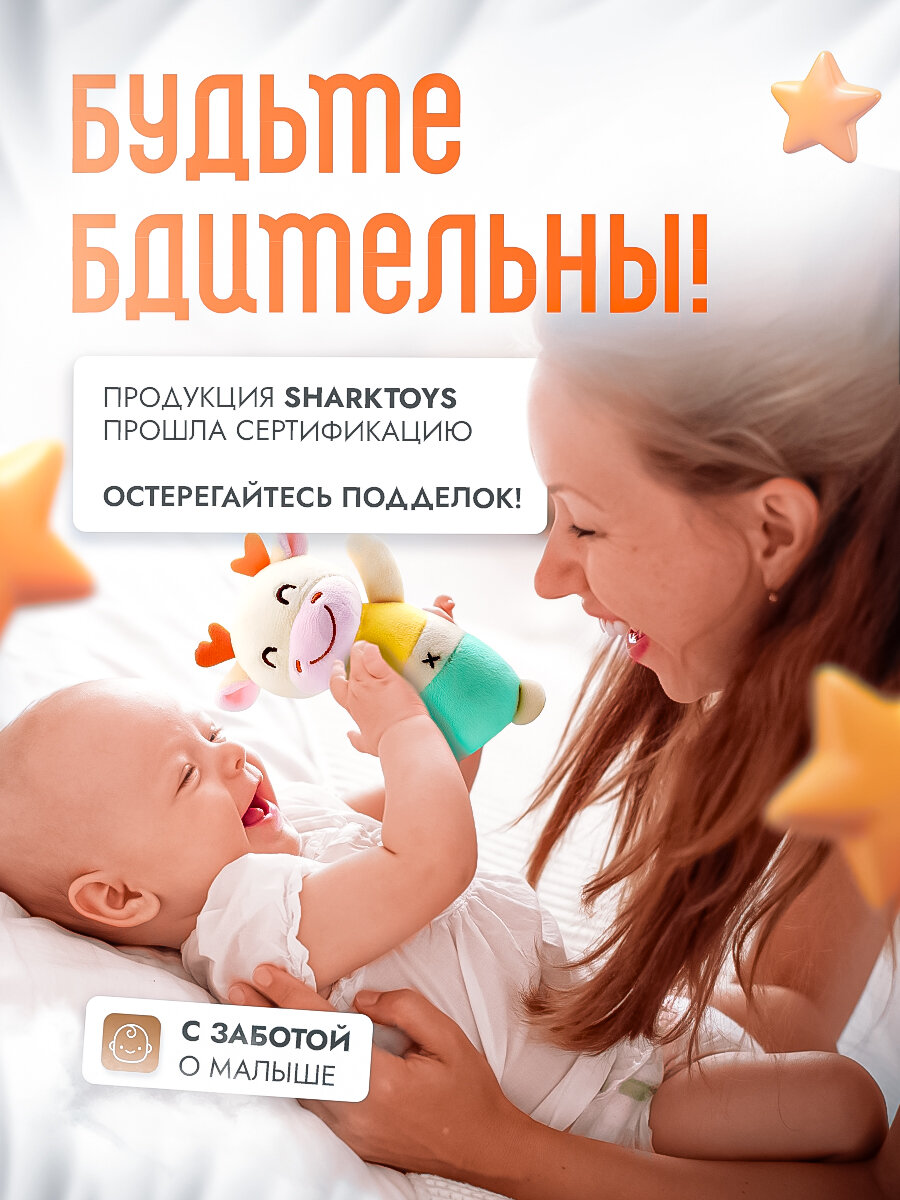Купить Погремушка "Танцующий Жирафик" SHARKTOYS, с пищалкой, шуршалка, развивающая, гипоаллергенная