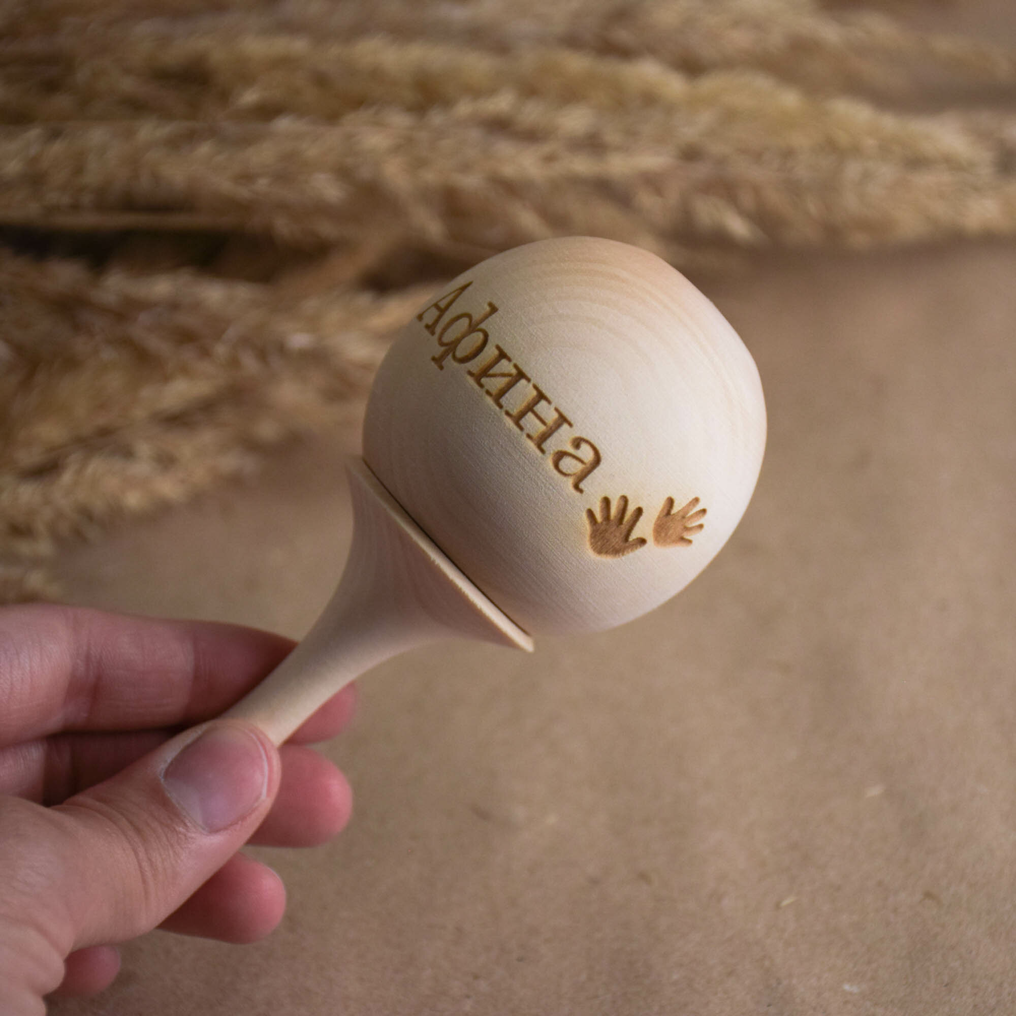 Игрушка Погремушка Маракас Деревянная для Новорожденного с Вашей Гравировкой
