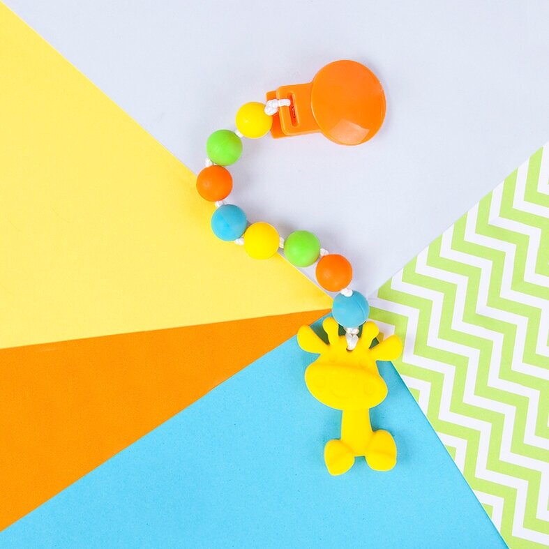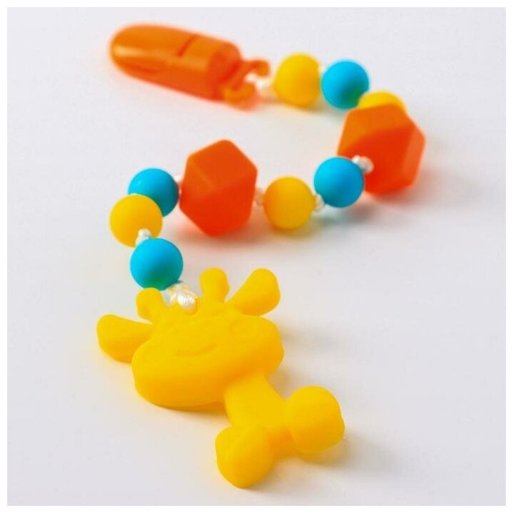 | Плюсы: | Лёгкий, бусинки удобные для жевания, жираф подходящего размера, крепление пластиковое, не царапает ребёнка |