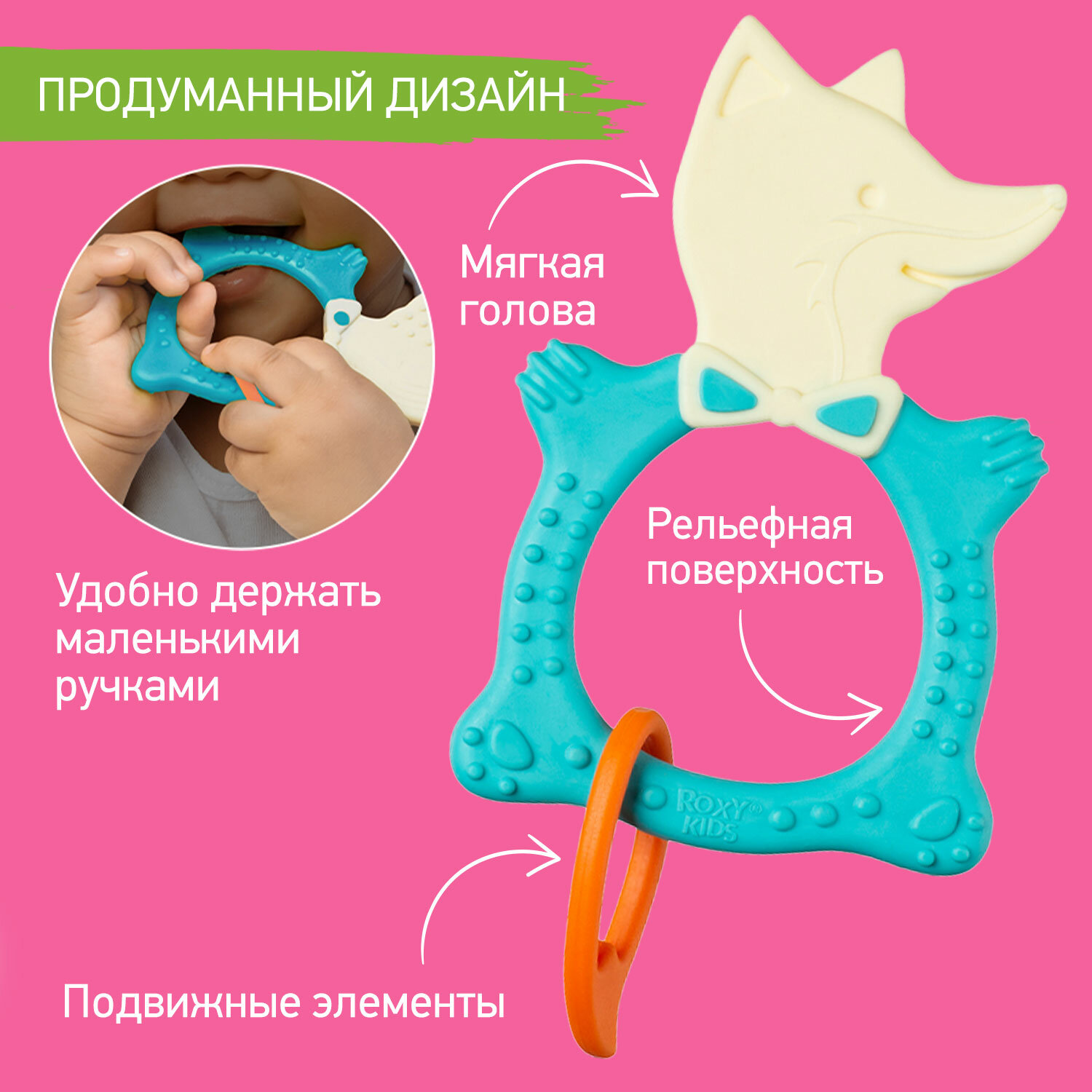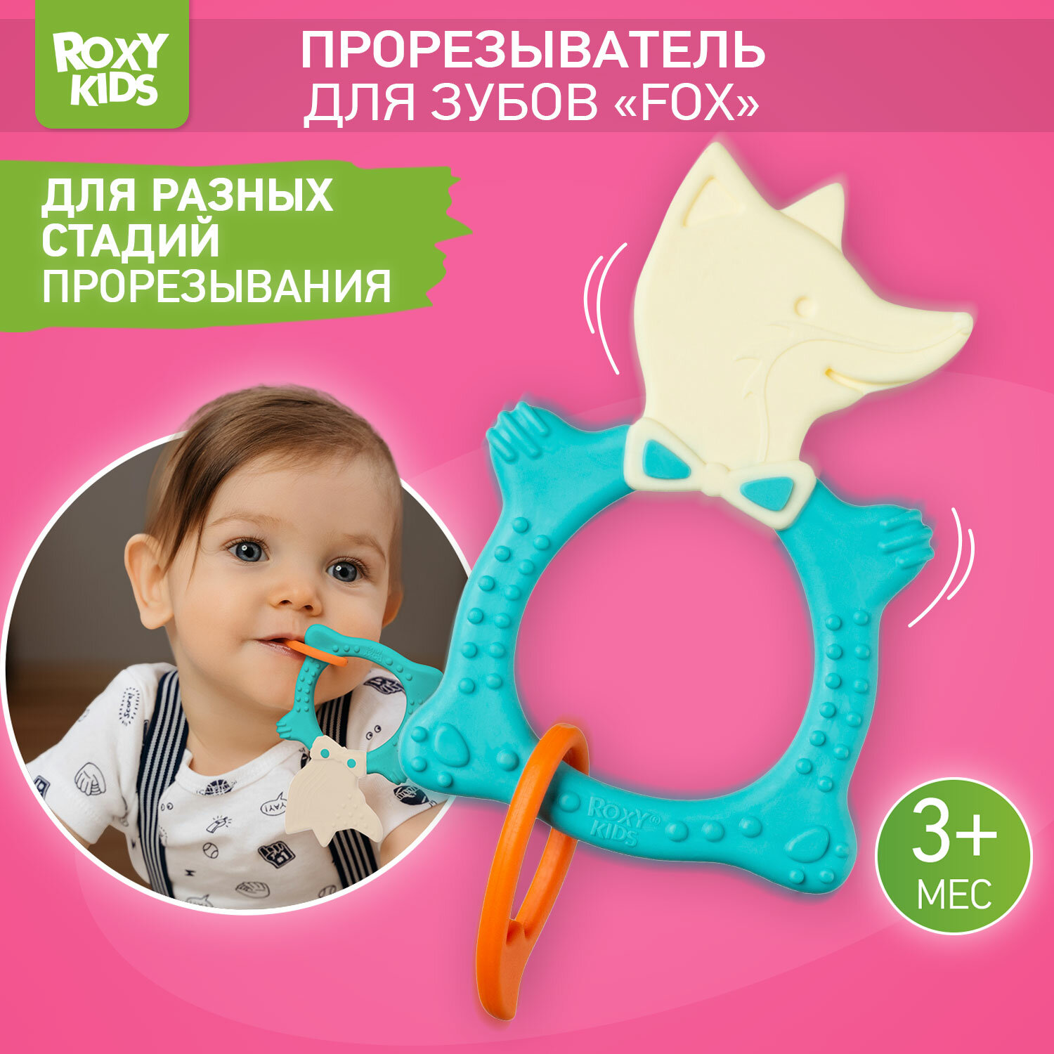 Универсальный прорезыватель FOX от ROXY-KIDS. Цвет мятный. интересное: