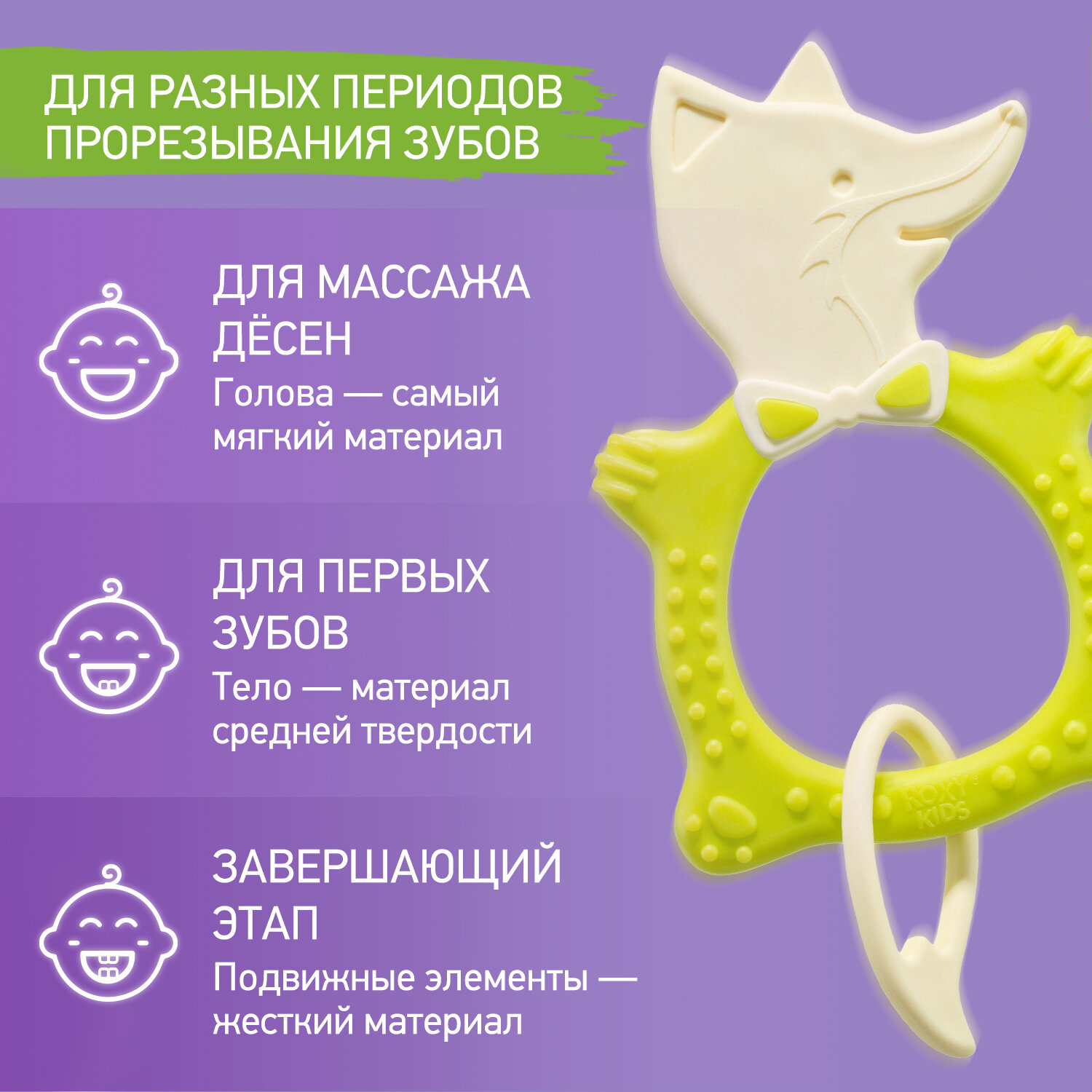 Универсальный прорезыватель FOX от ROXY-KIDS. Цвет зелёный. интересное: