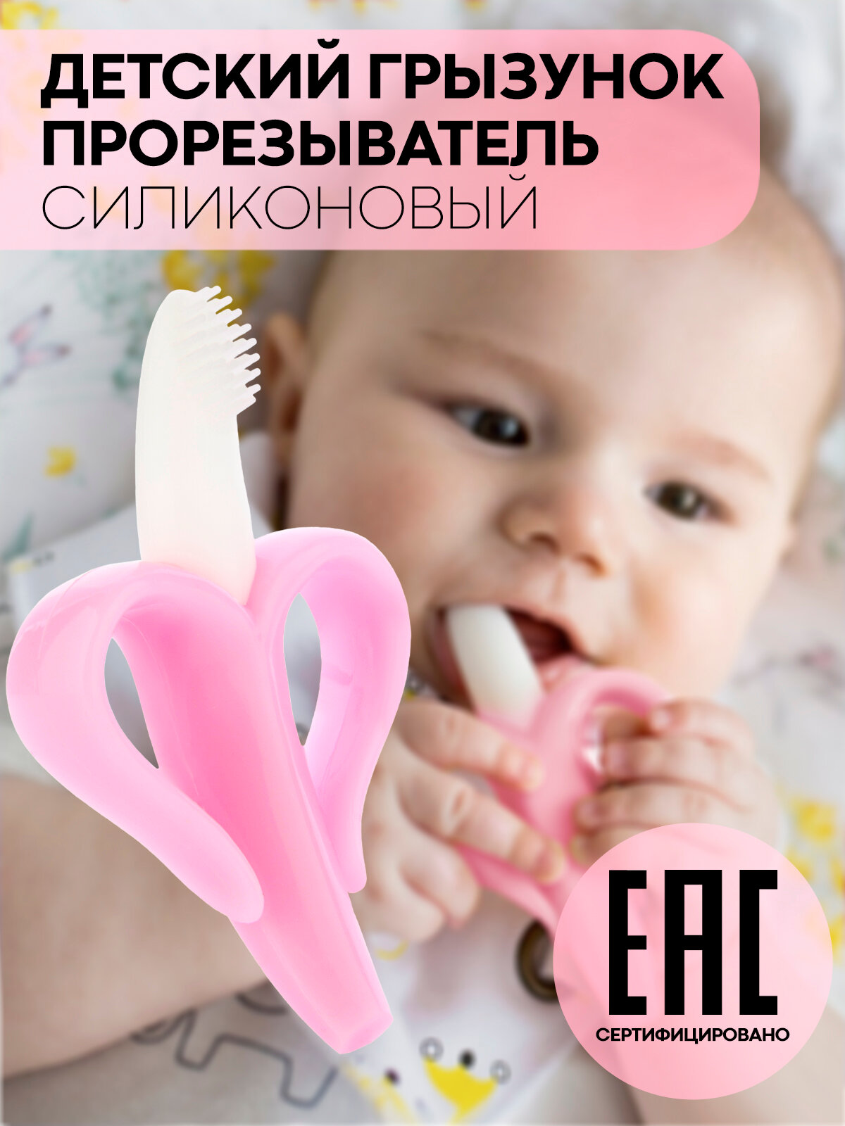 Грызунок прорезыватель банан детский для зубов, бренд Картофан, малиновый интересное: