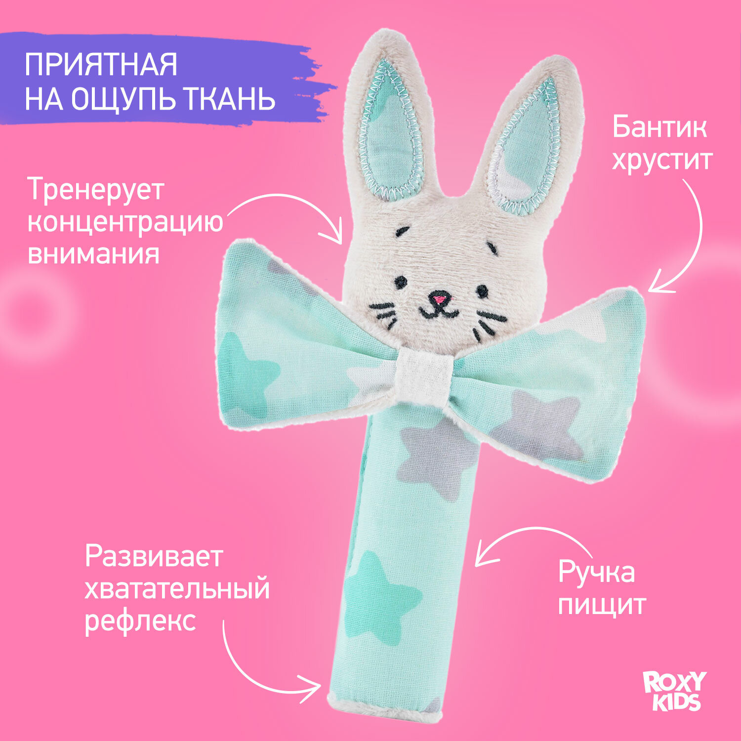 Развивающая мягкая игрушка для малыша хрустящая пищалка CRISPY BUNNY от ROXY-KIDS , звезды интересное:
