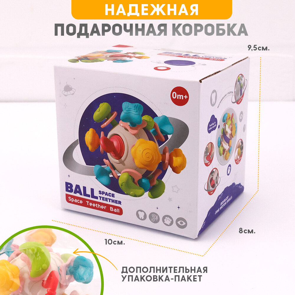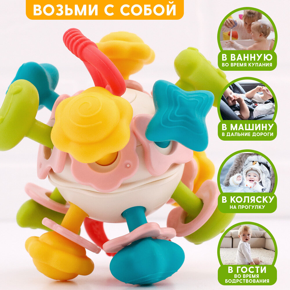 Погремушка-Прорезыватель "Шар", многофункциональная, силикон/пластик, желтый