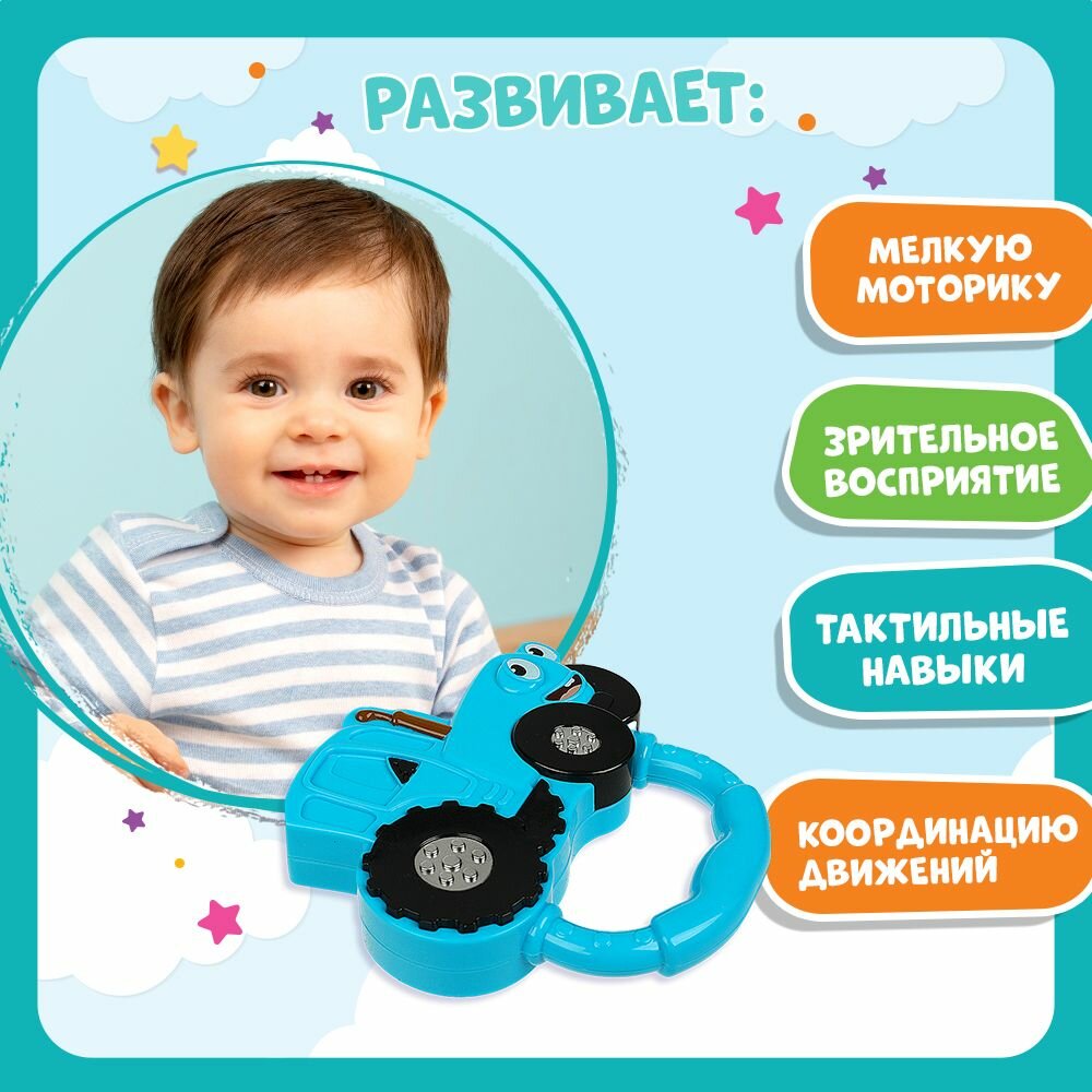 Развивающая игрушка погремушка с удобной ручкой Синий трактор Умка интересное:
