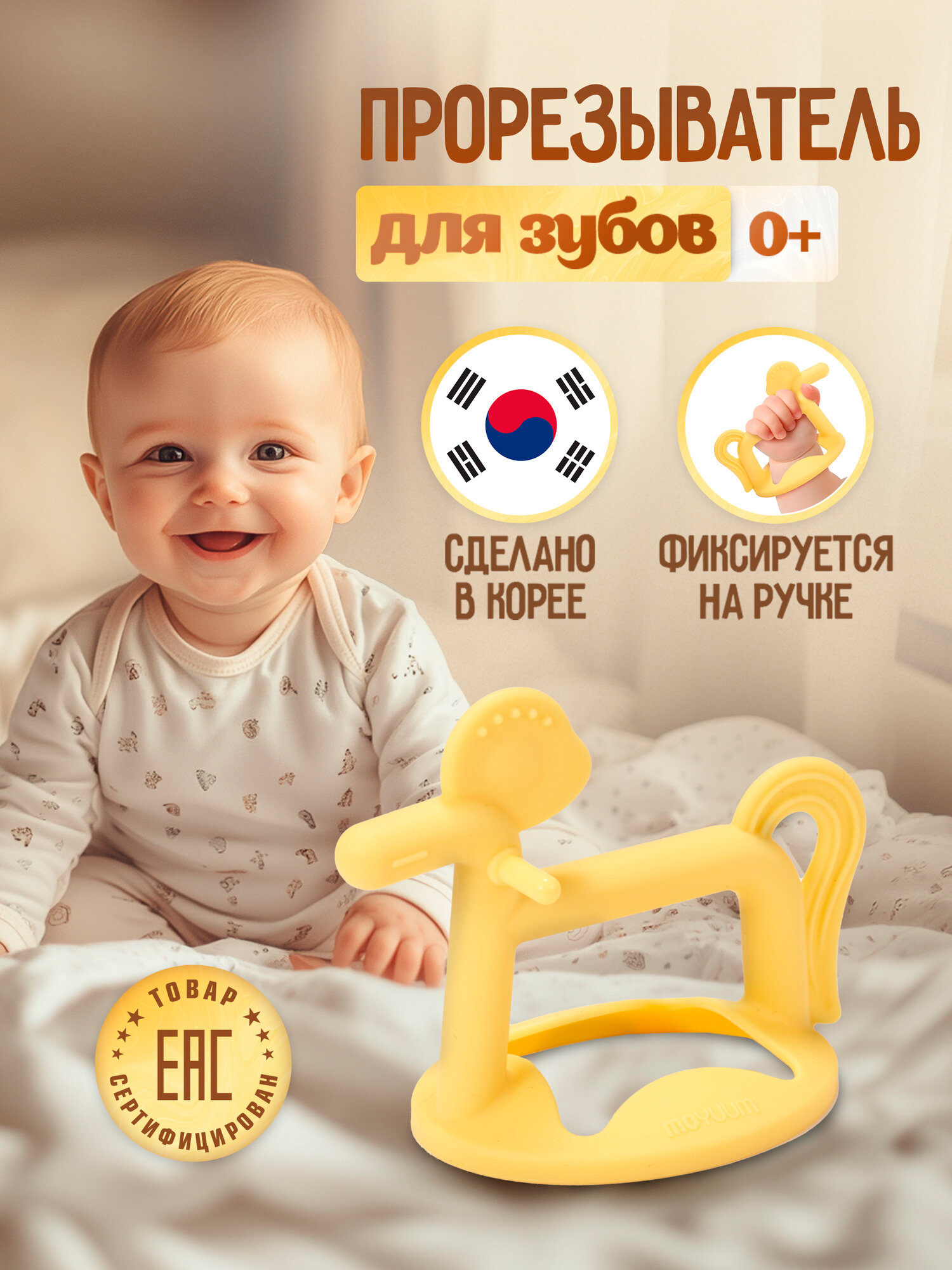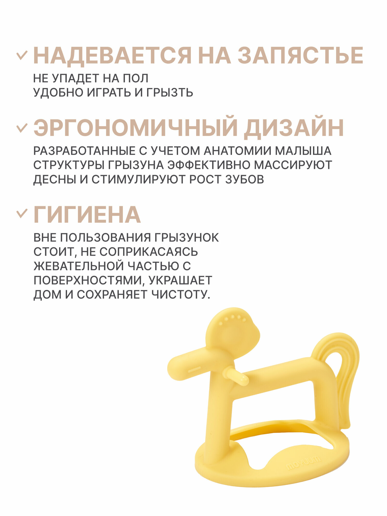 СохранитьПрорезыватель для зубов грызунок MOYUUM "Пони" платиновый силикон для детей от 3 месяцев, желтый интересное: