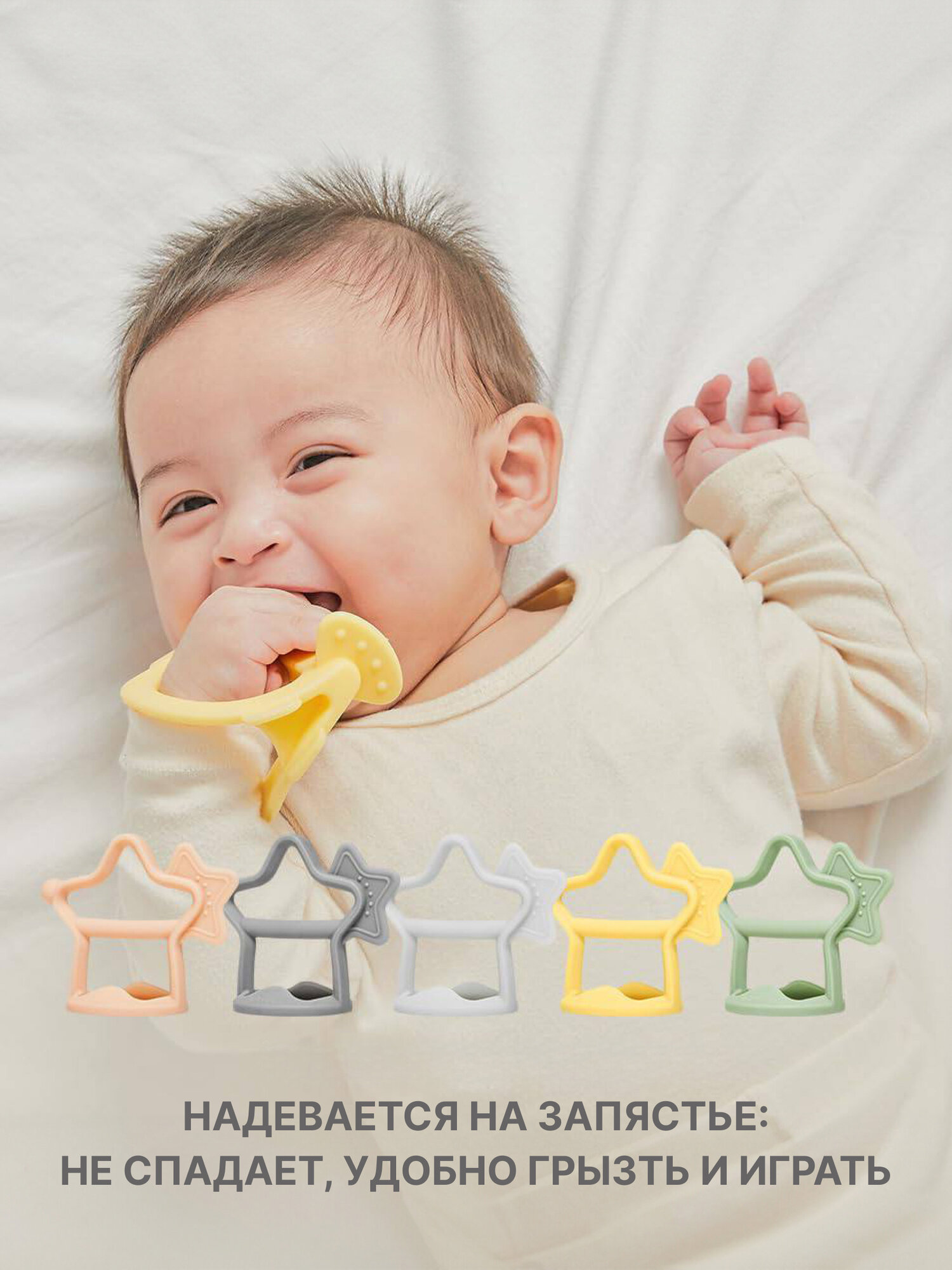 | Особенности | безопасная форма / грызунок-прорезыватель / на запястье |