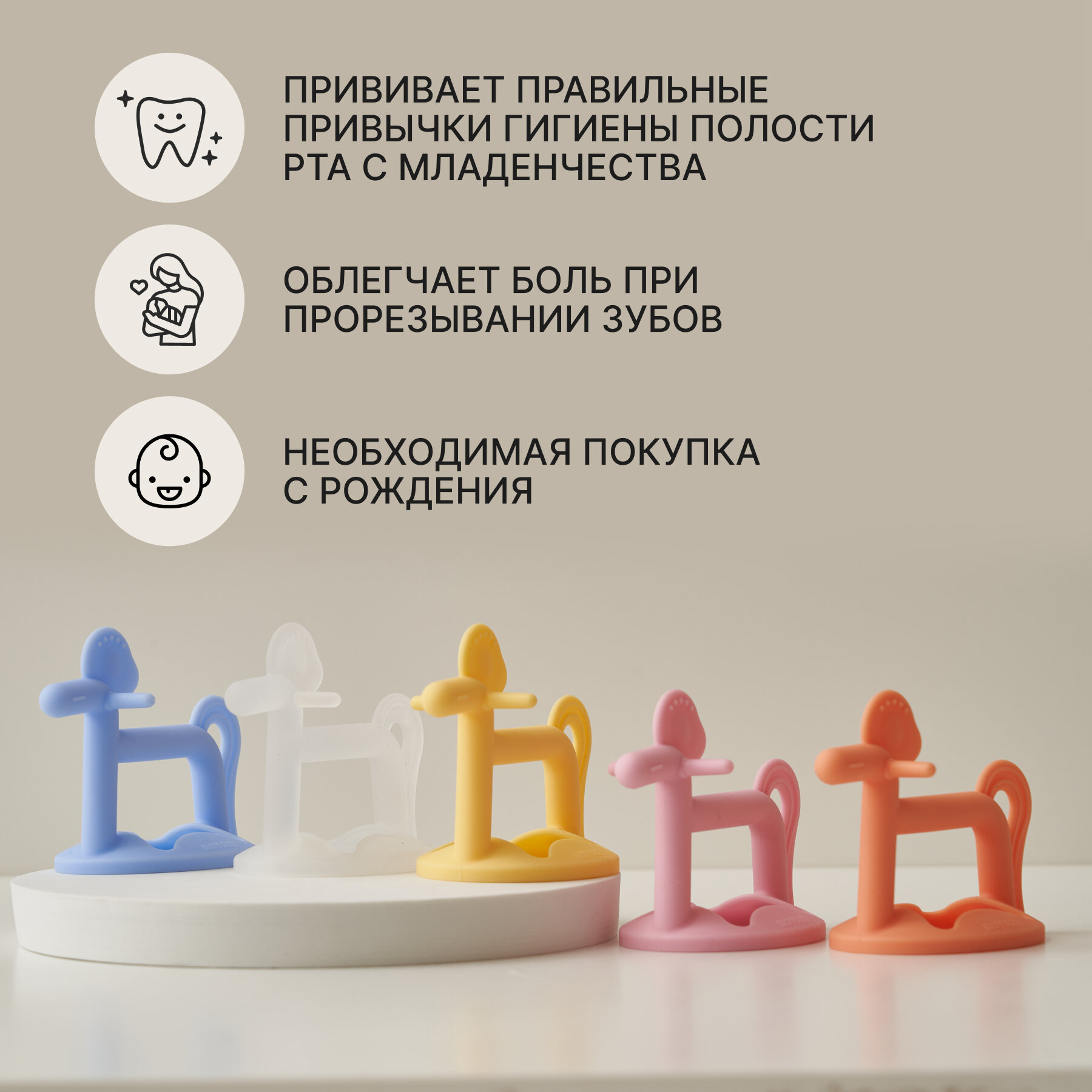 Прорезыватель для зубов грызунок MOYUUM "Пони" платиновый силикон для детей от 3 месяцев, прозрачный