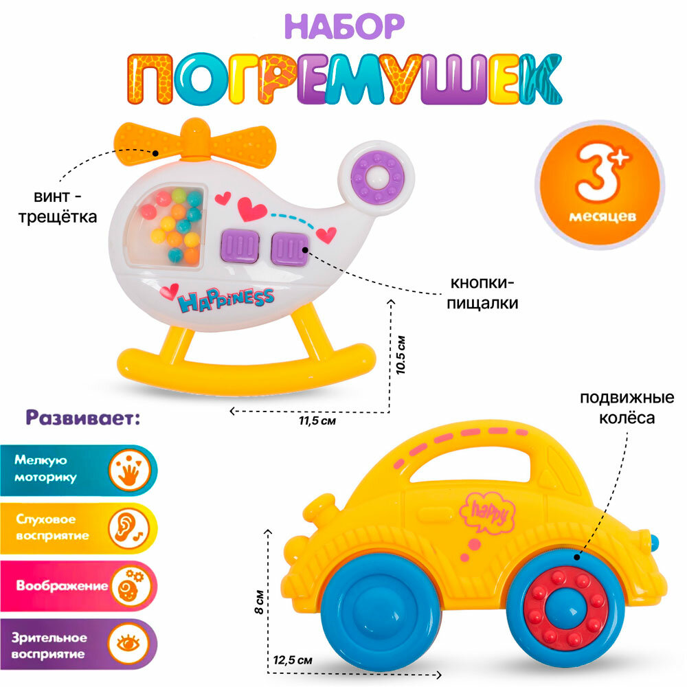 Набор погремушек 2ШТ, желтая машинка интересное: