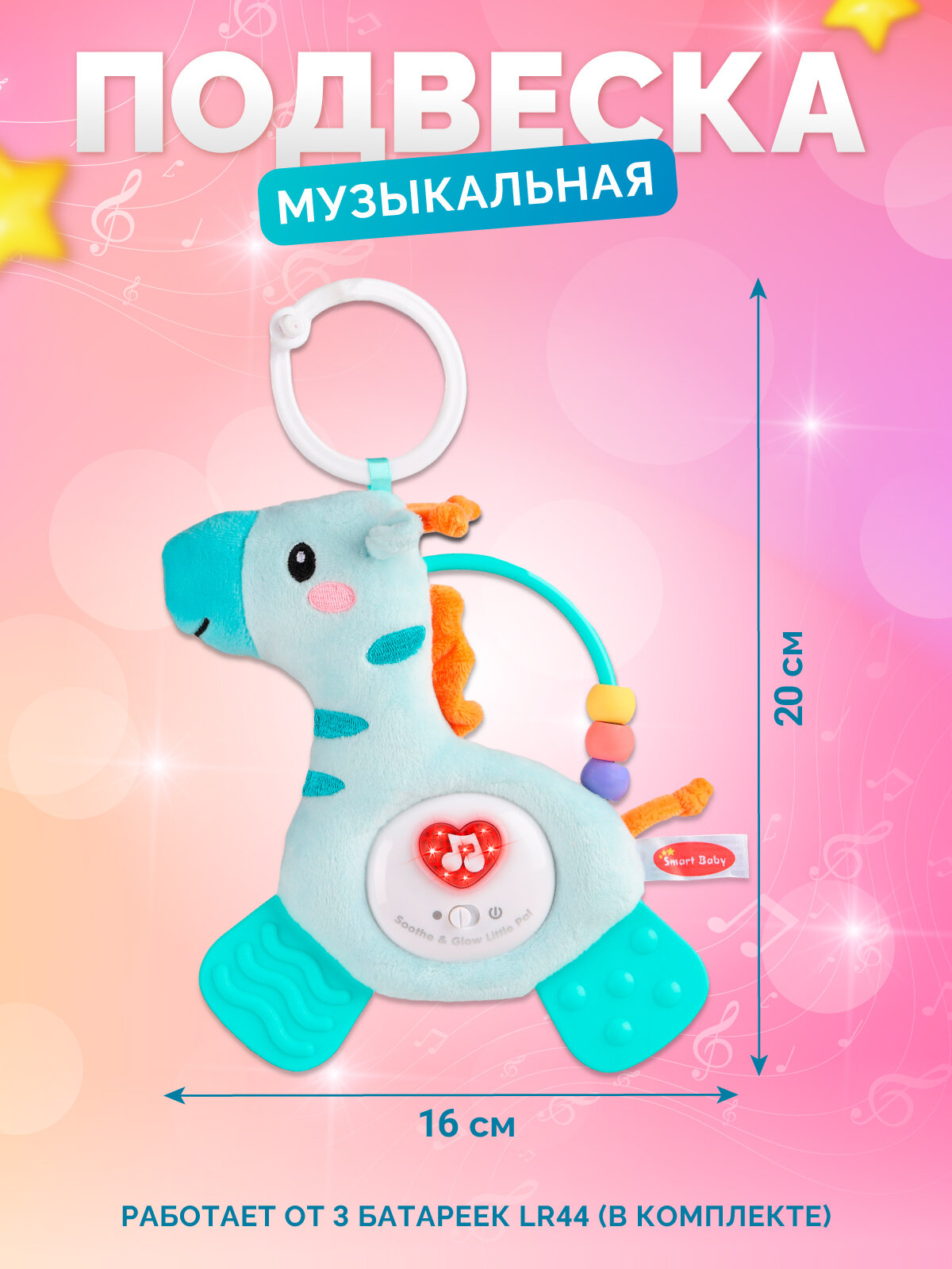Подвеска музыкальная с прорезывателем "Жираф", 11 звуков/сказок/мелодий/потешек, JB0333393 интересное: