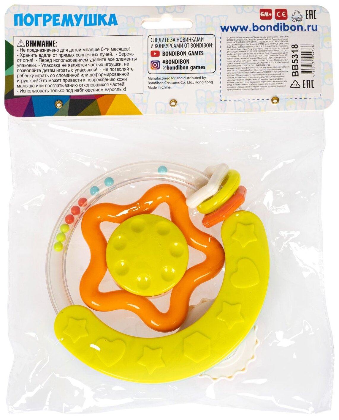 Набор погремушек "колечко С солнцем, звёздочка" с прорезывателями Baby You Bondibon интересное:
